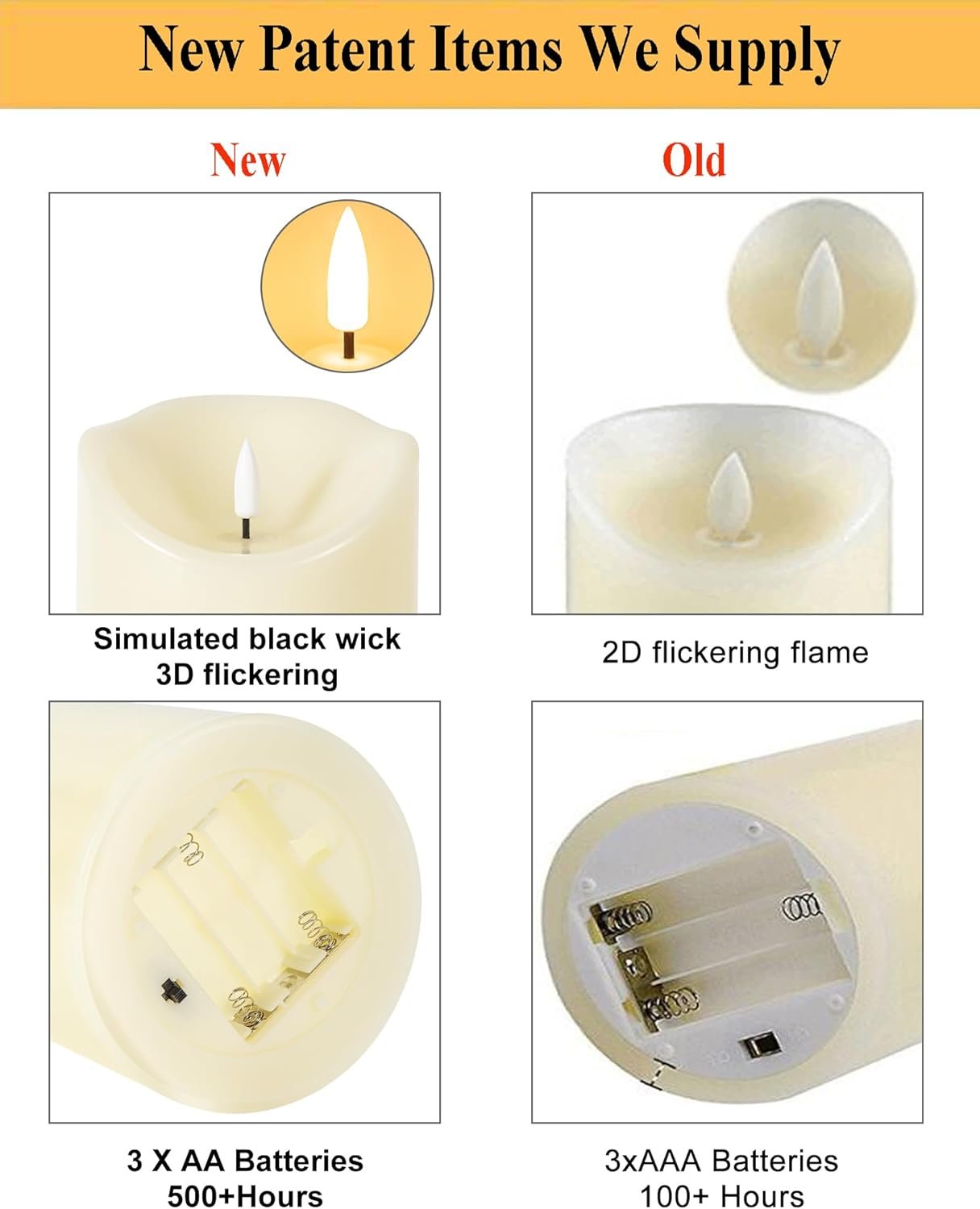 【Realistic Flameless Candles】These LED candles use a patented 3D simulation black wick that has a real flame effect. Creating a soothing romantic ambiance makes electric candles like conventional pillar candles, so beautiful.