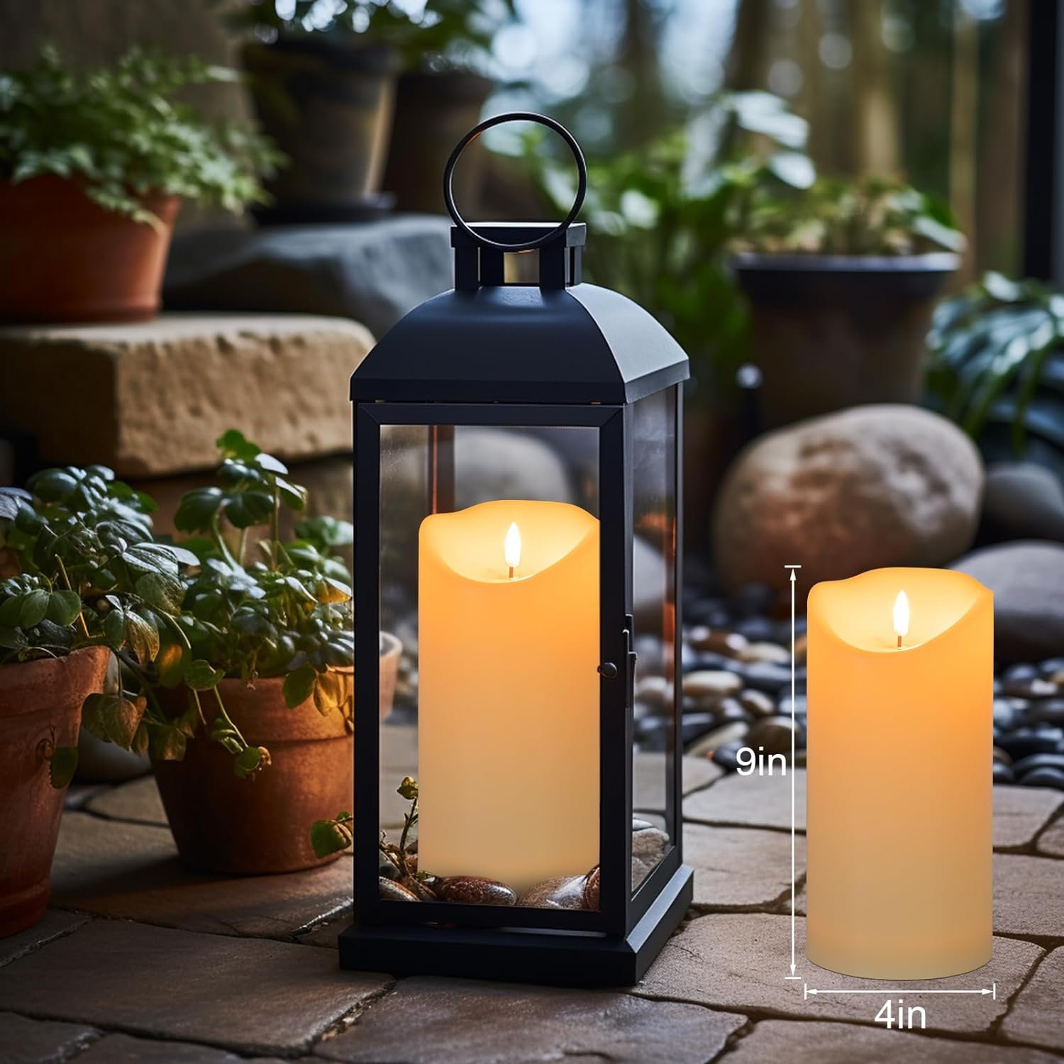 【Perfect Decoration】Set of 2 large candles measure 9” in height and 4” in diameter, emit a warm yellow glow, and can fit most lanterns. Great to set the mood of your room, porch, and patio.