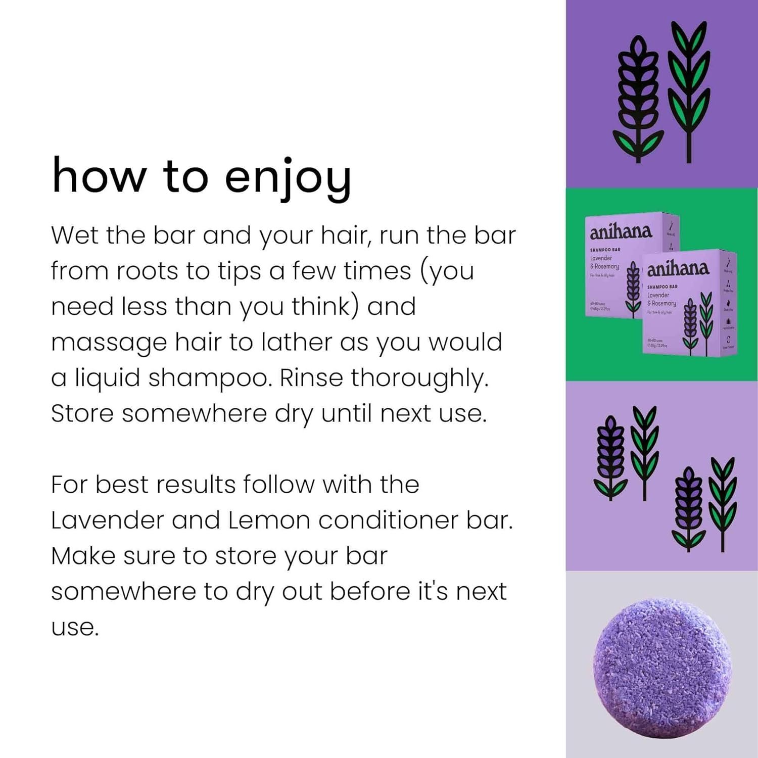 LAVENDER & ROSEMARY: Introducing Anihana shampoo bar infused with lavender & rosemary with a delightful fragrance, leaving your hair smelling fresh and revitalized without overwhelming your senses