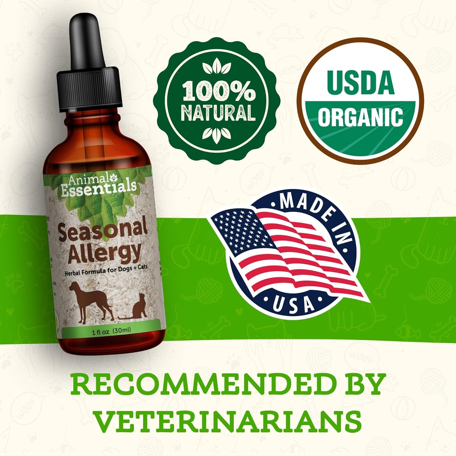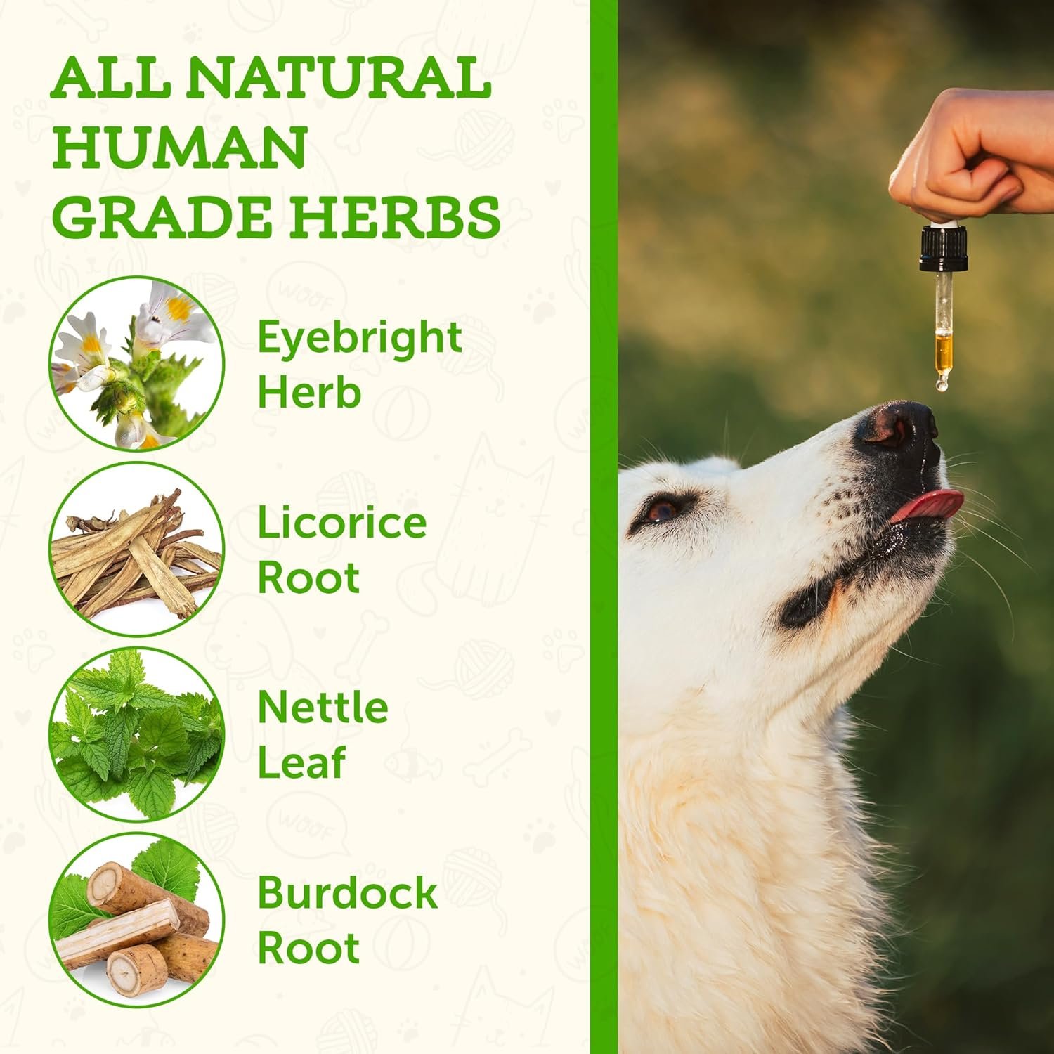 SEASONAL ALLERGY SUPPORT – Made with 100% Organic Human Grade Herbs, our sweet tasting glycerin based herbal tincture is designed to help safely relieve your pet’s occasional seasonal allergies