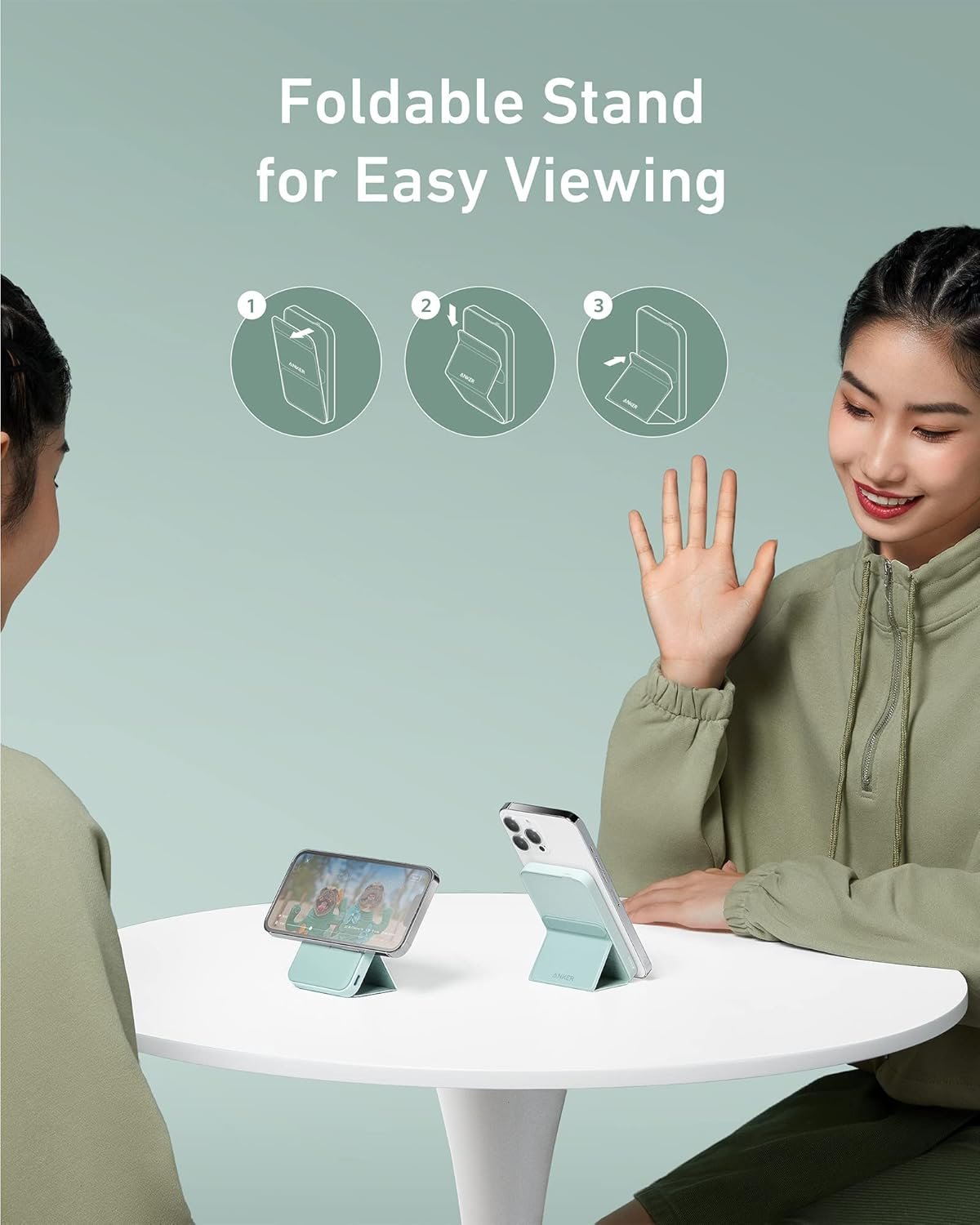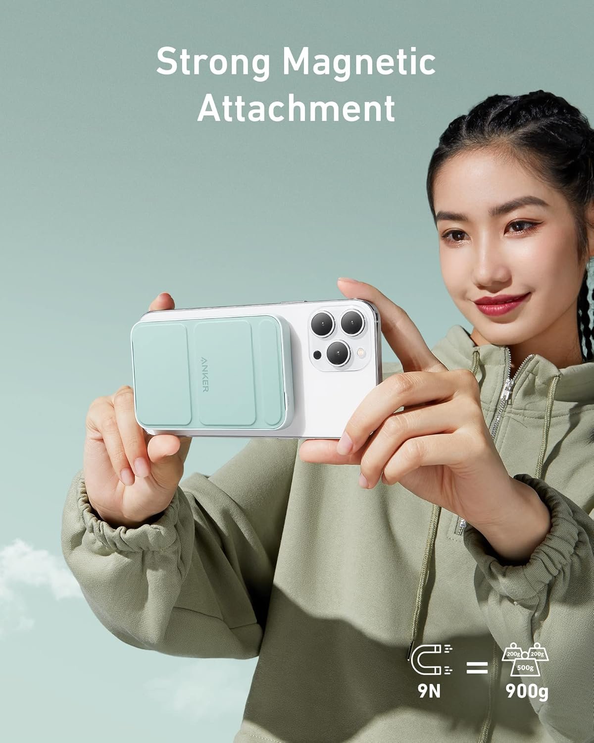 The portable charger has a built-in kickstand that can keep your iPhone 13/12 upright for comfortable viewing while charging. When you’re on the go, fold the kickstand and snap it on the back of your phone for a convenient charge.