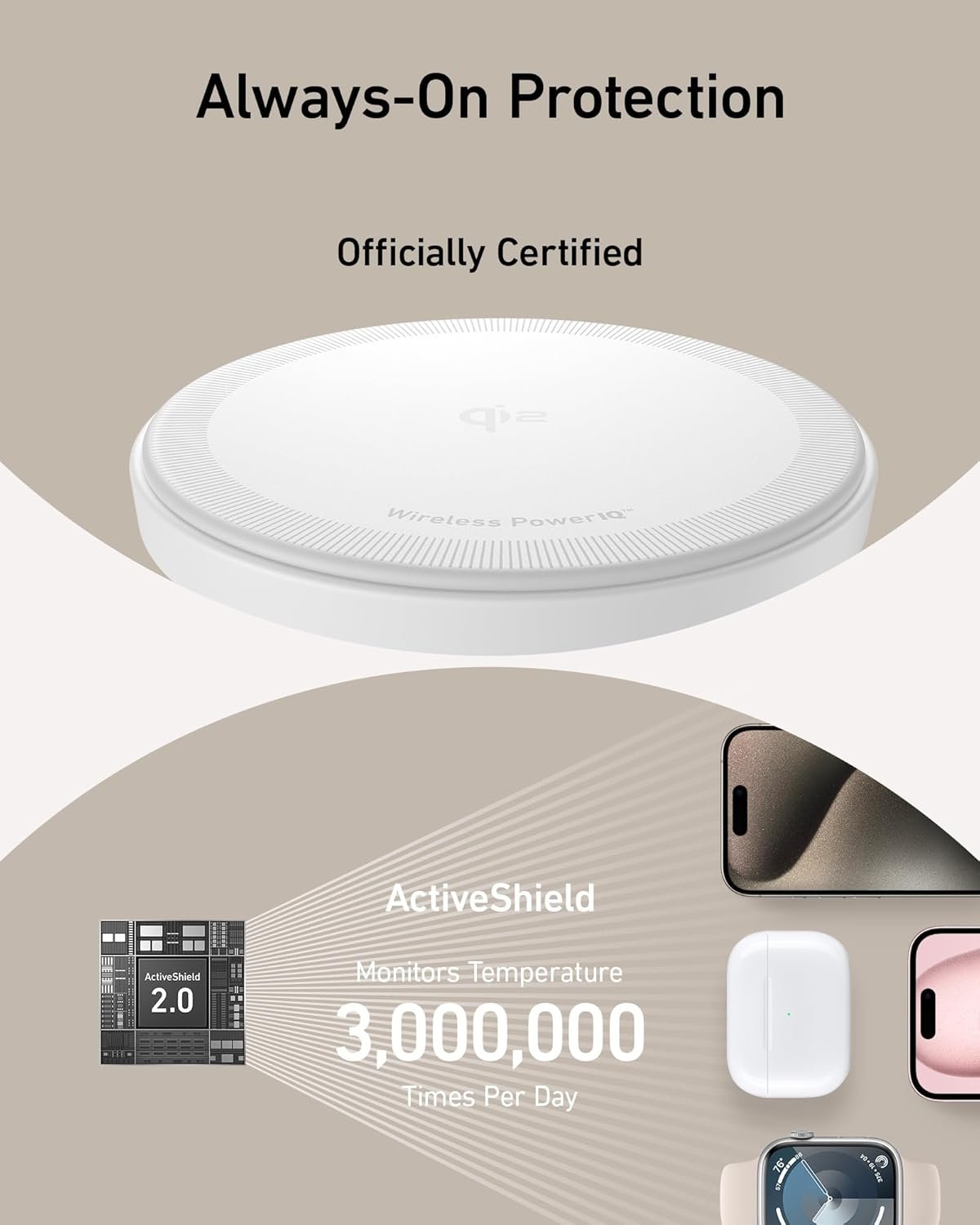 Safety First: Rely on Anker’s proprietary ActiveShield technology which monitors temperatures over 3,000,000 times per day to ensure the safest charging.