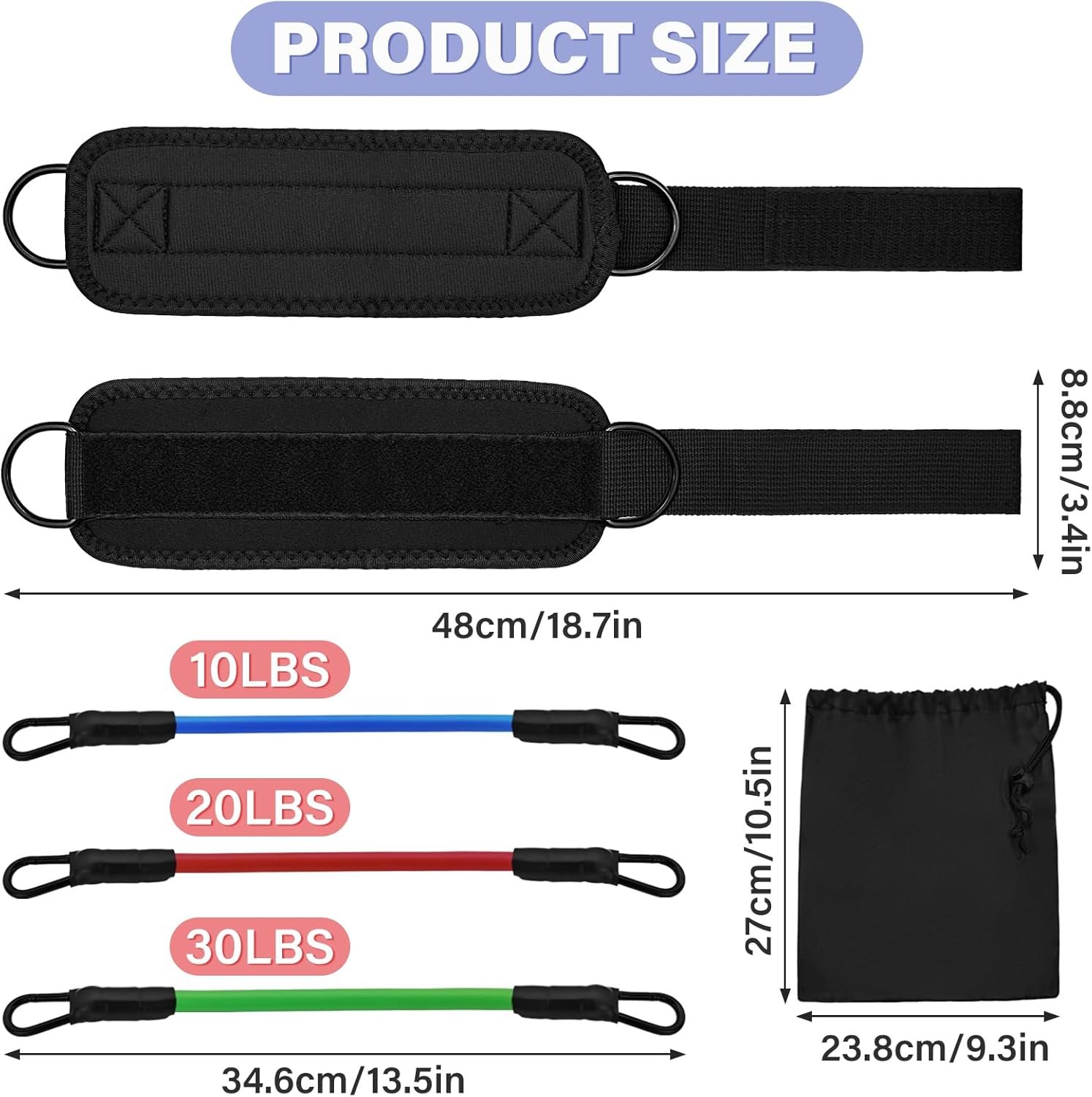 Specifications and Packages: You will receive our ankle resistance bands set, which includes 3 different levels of resistance bands, a pair of ankle straps, and a drawstring storage bag for easy carrying. With easily adjustable ankle straps to fit different ankle sizes, the ankle straps are a must-have exercise equipment for home