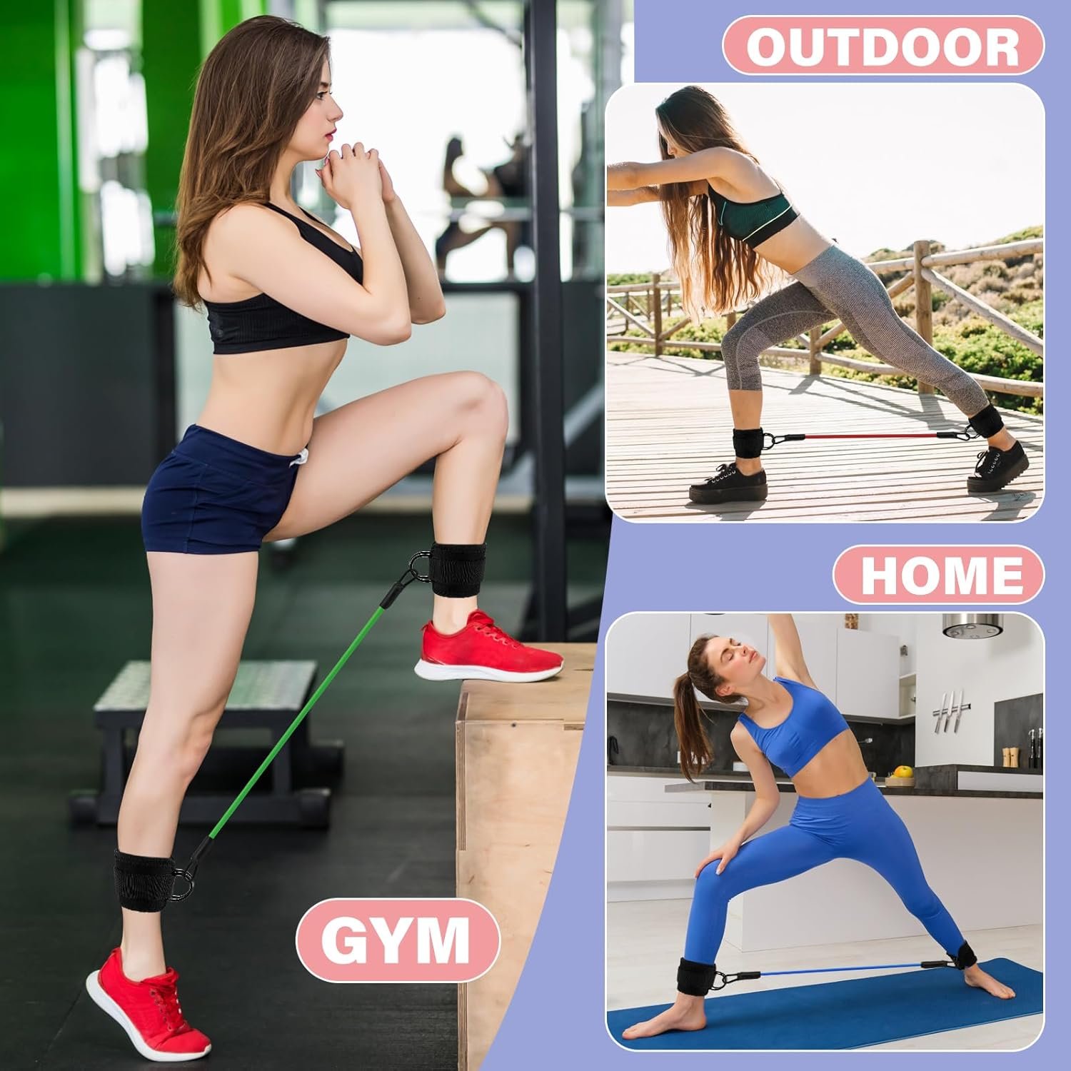 For Different Fitness Stages: Our workout bands are designed with 3 different tension levels to meet the needs of beginners and fitness professionals, so you don’t need to worry about too light or too much ankle resistance. It is a convenient and effective tool for targeting the glutes and hips to help you achieve your fitness goals