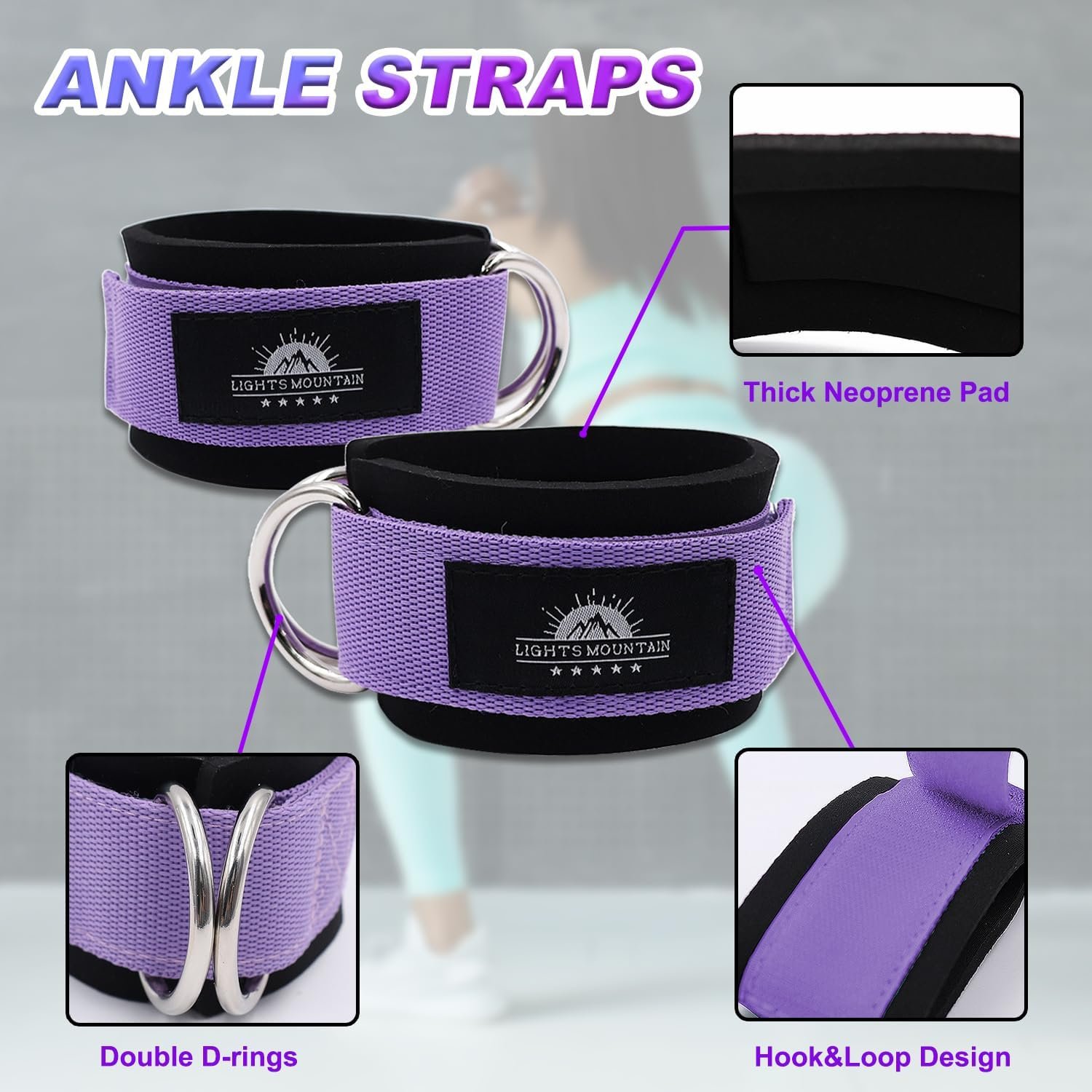 Ergonomic Ankle Straps: Designed with soft neoprene and equipped with double D-rings, these ankle straps offer enhanced stability and comfort during use.
