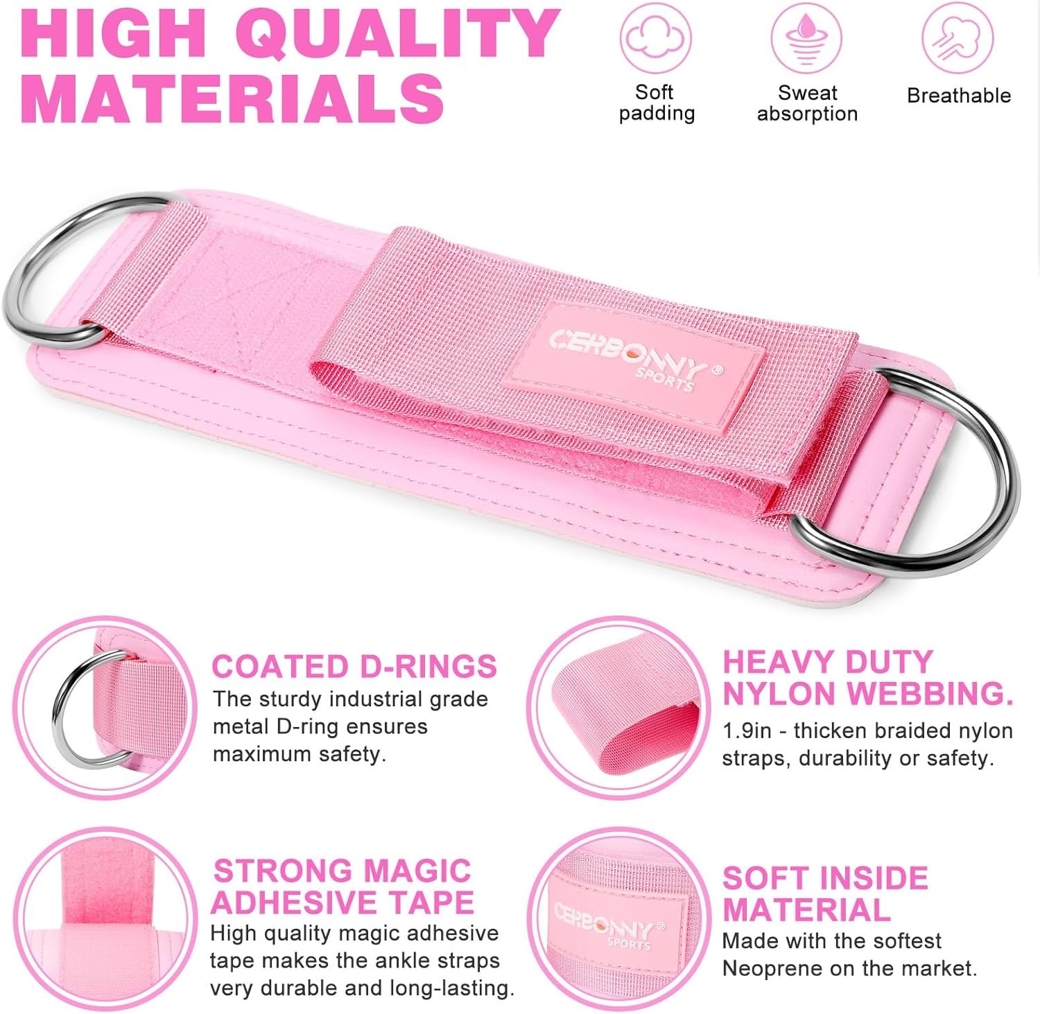 【PREMIUM COMFORT DESIGN】 – Crafted with premium sponge, the ankle strap guarantees unparalleled comfort and safety during intense workouts. The neoprene padding delivers a soothing touch throughout, while the double D-ring system keeps the band firmly in place, enhancing your confidence during leg and glute exercises.