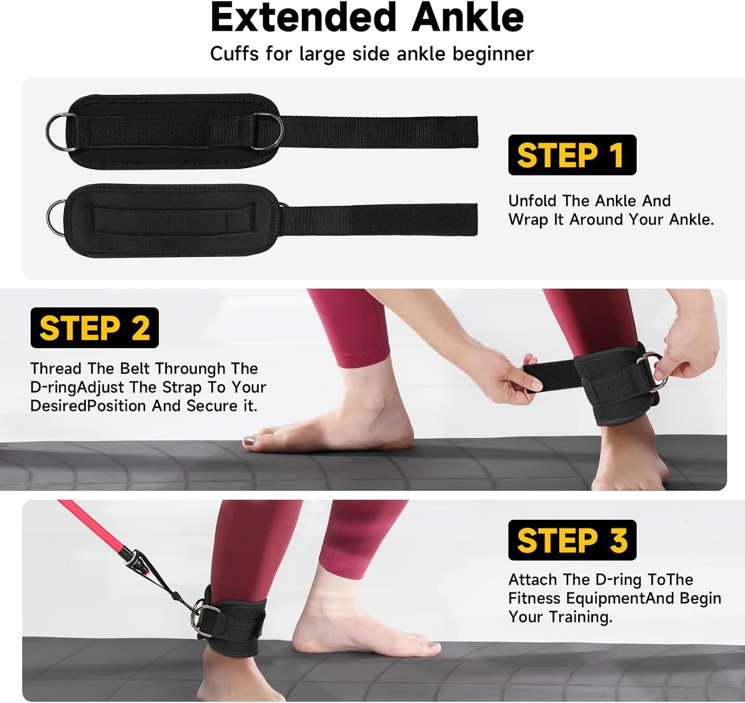 【Extended Ankle Cuffs】If your ankle circumference is on the larger side and you are looking for a longer ankle strap. Our ankle straps will be more suitable for you. We have increased the length of our ankle straps from the normal 23cm to 27cm. More suitable for beginners and larger sizes.