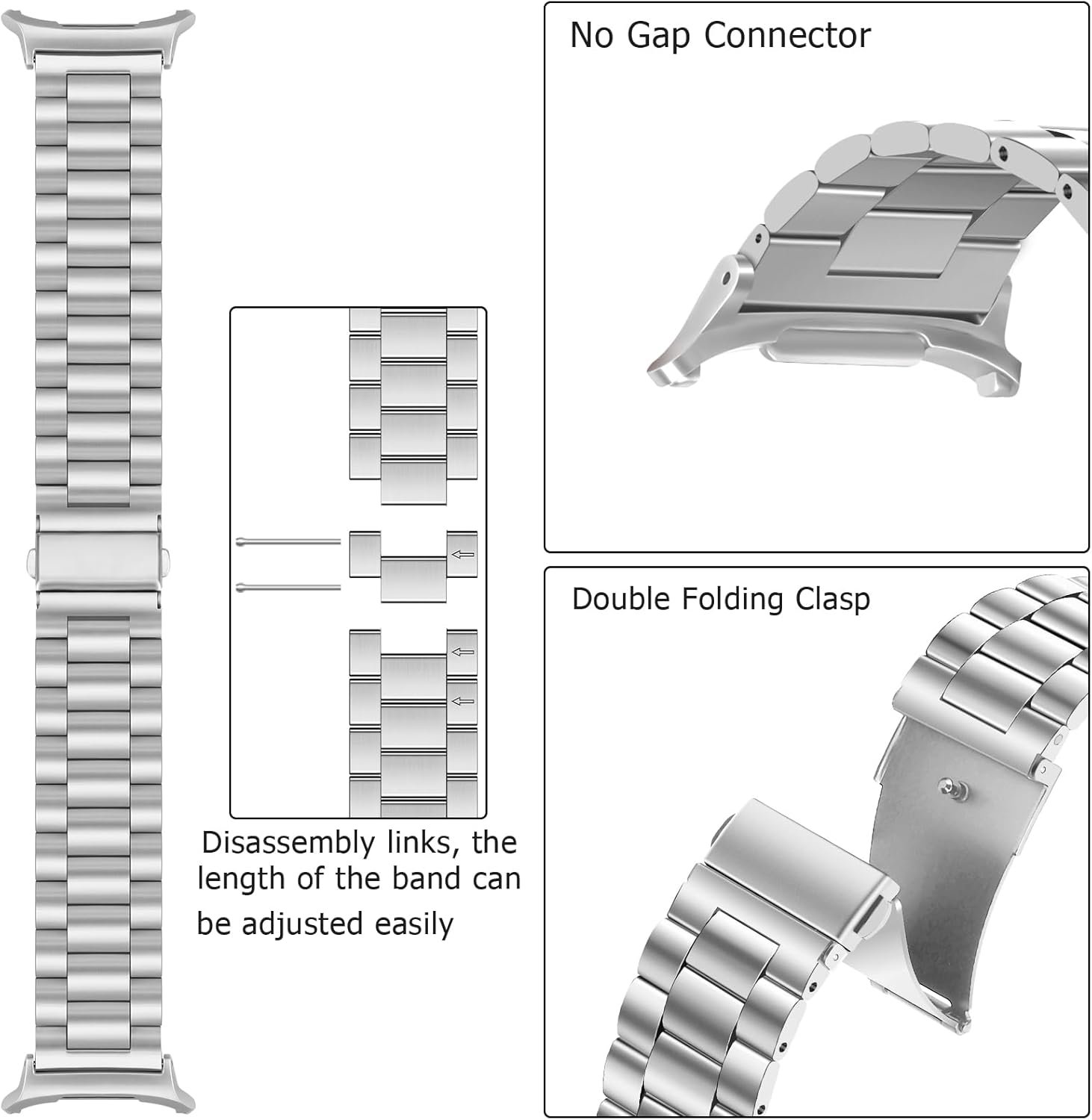 【Adjustable Size】 Fit 6.7″-9.4″ (170 mm – 240 mm) wrist, specially designed for men and women. Comes with removal tool which makes you possible to adjust the band length suit for yourself(Up to 8 links can be removed).