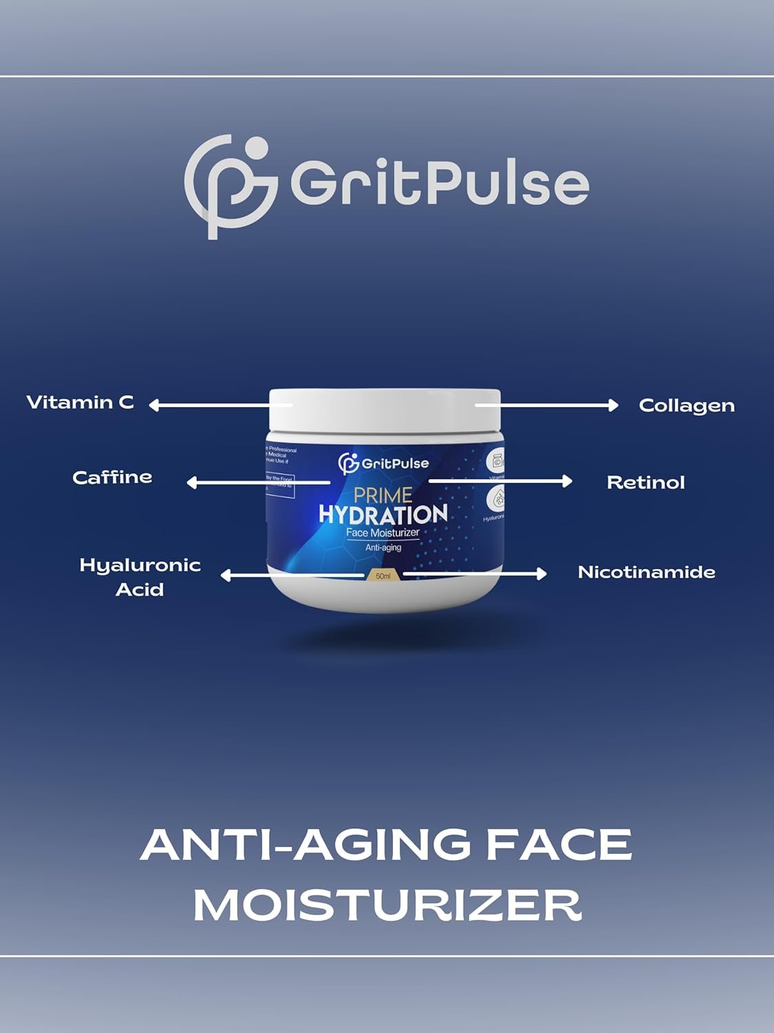 Anti-Aging Marvel: GritPulse Face Moisturizer is your ally in the battle against aging. Our potent blend of ingredients works synergistically to diminish fine lines, wrinkles, and other signs of aging, revealing a more youthful and vibrant appearance.