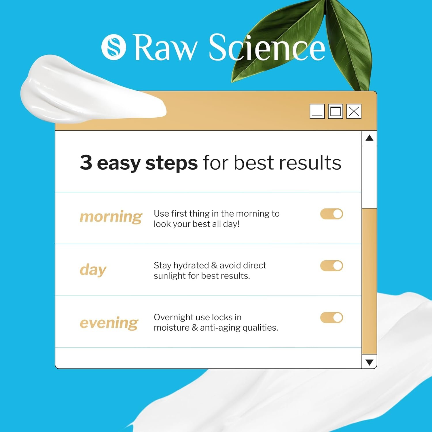 【SKIN FIRMING FACE CREAM】: At Raw Science, we believe in the power of our face cream anti aging formula. That’s why our firming moisturizer face cream delivers on the promises we make. Say goodbye to dull, wrinkled skin and hello to your youth.