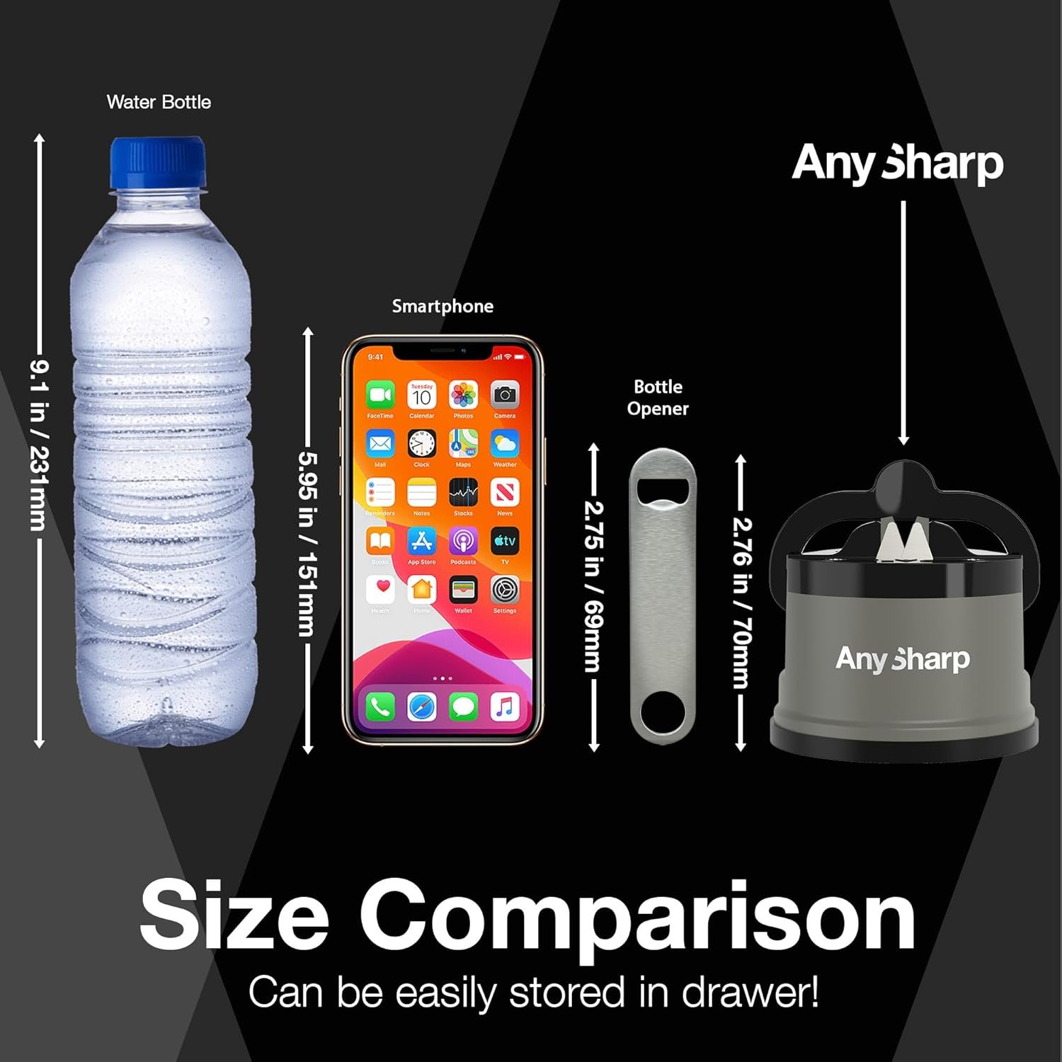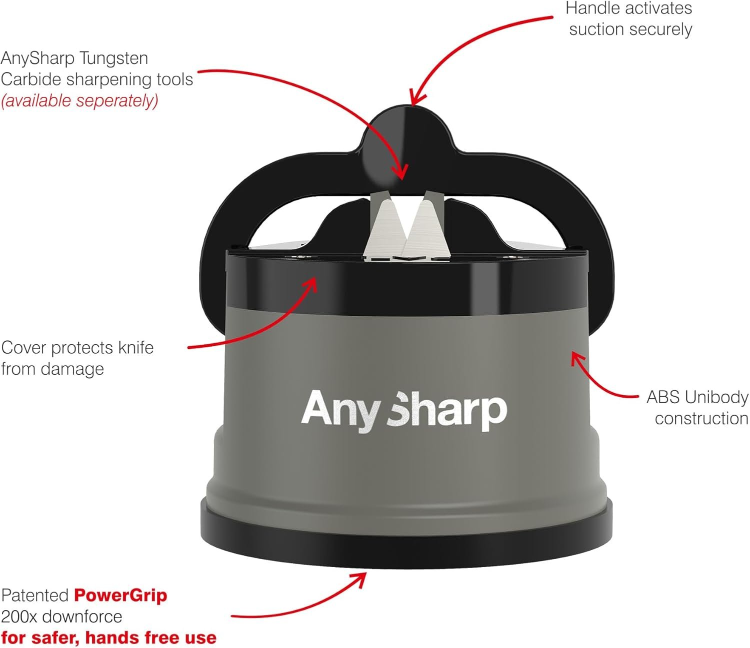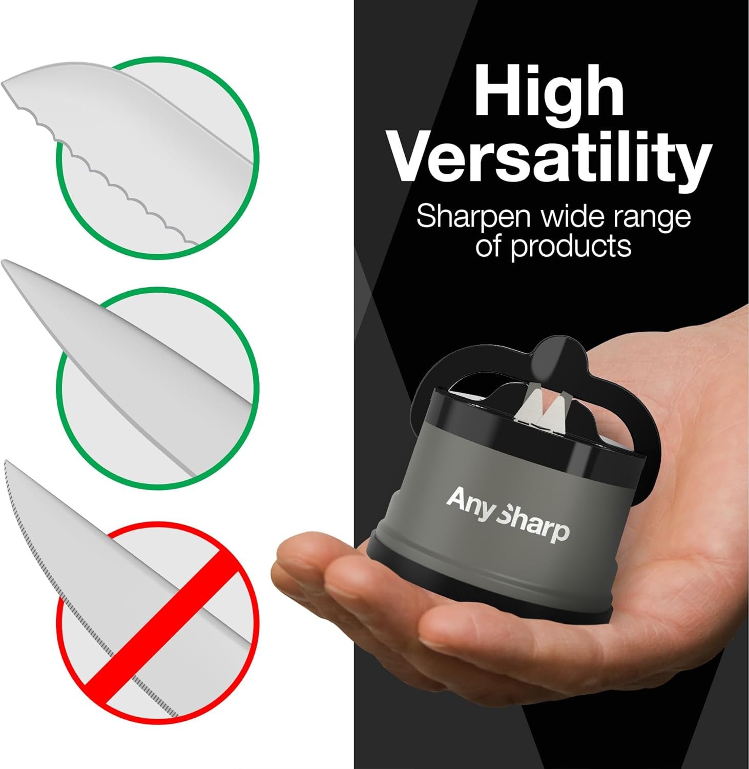 🖐️ Safety first with AnySharp! The unique PowerGrip suction feature allows for secure, one-handed use. It attaches securely to any flat surface, allowing you to focus on sharpening your knives, not holding the sharpener