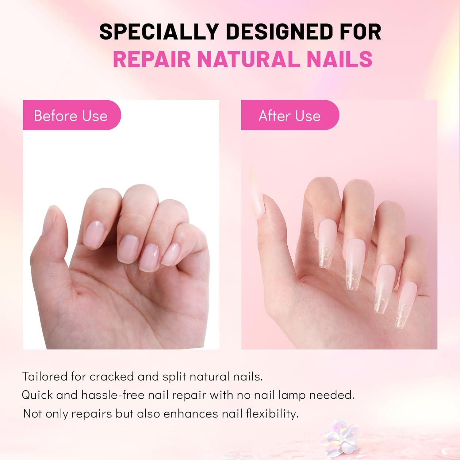 📍 Enhanced Flexibility and Vegan-Friendly – Our build powder not only repairs but also enhances nail flexibility. Embrace a comfortable and easy nail repair process with our vegan and cruelty-free formula, completely harmless and odor-free. Enjoy chip and crack resistance, along with water-resistant durability.