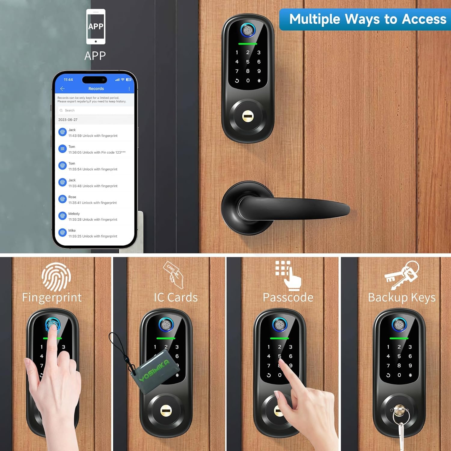 [Multiple Ways To Access] Fingerprint + Passcode + App + IC Cards + Backup Keys + Alexa Voice Unlock(Gateway Required) + Remote Unlock(Gateway Required). Never worrying about forgetting keys and lock yourself out, fingerprint door lock provide friendly access options for children and the elderly.