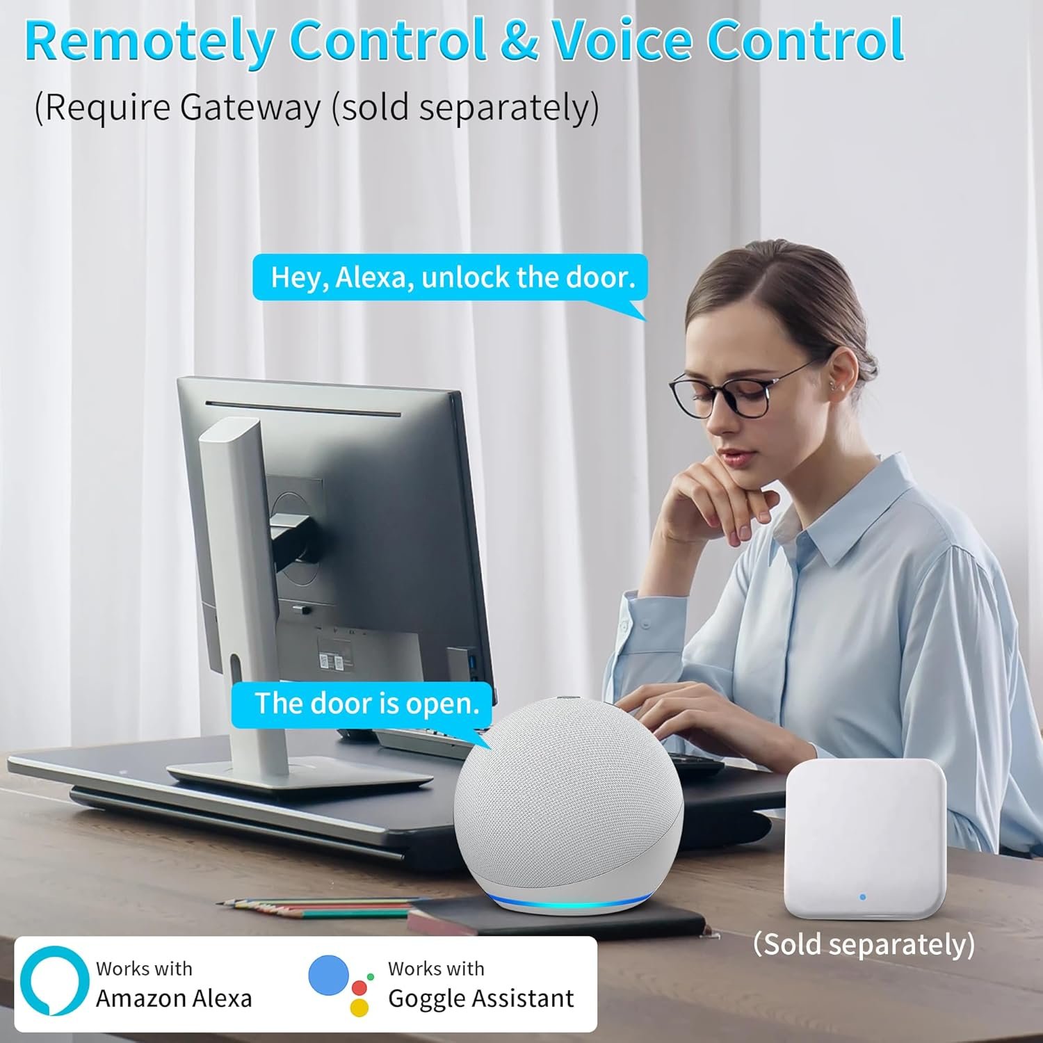 [Remote Access & Voice Control] Paired with extra Gateway (Sold Separately), you can lock/unlock the keyless door lock anywhere anytime; share E-key/codes, change code and check real-time access logs remotely, and voice control with Alexa.