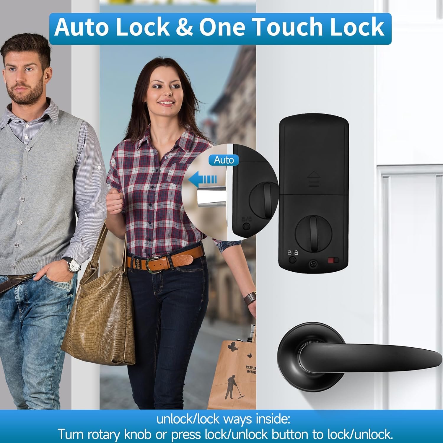 APP Control Front Door Lock Set, Heavy Duty Fingerprint Door Lock, Keyless Entry Door Lock, Bluetooth Smart Electronic Digital Keypad Door Lock