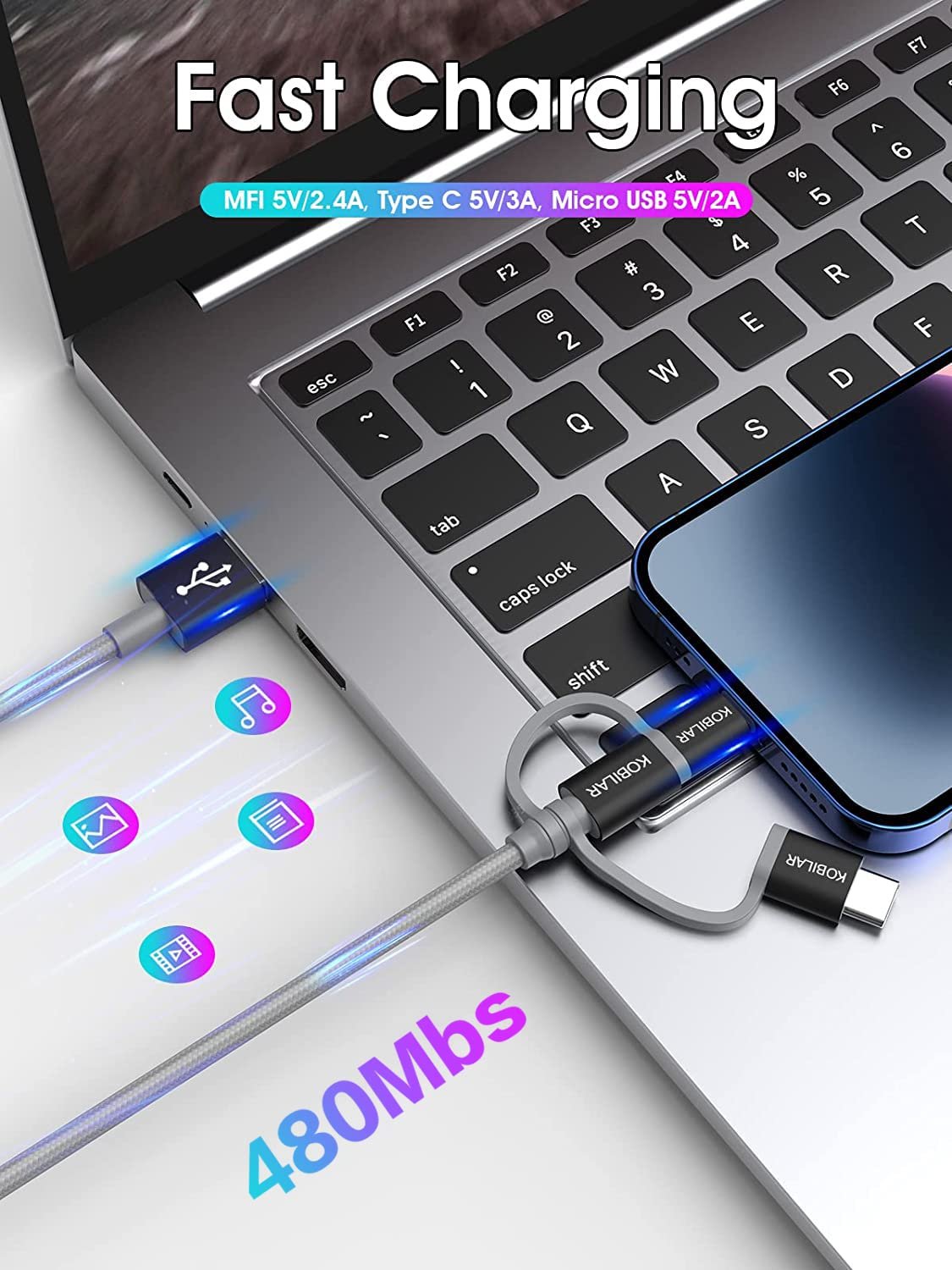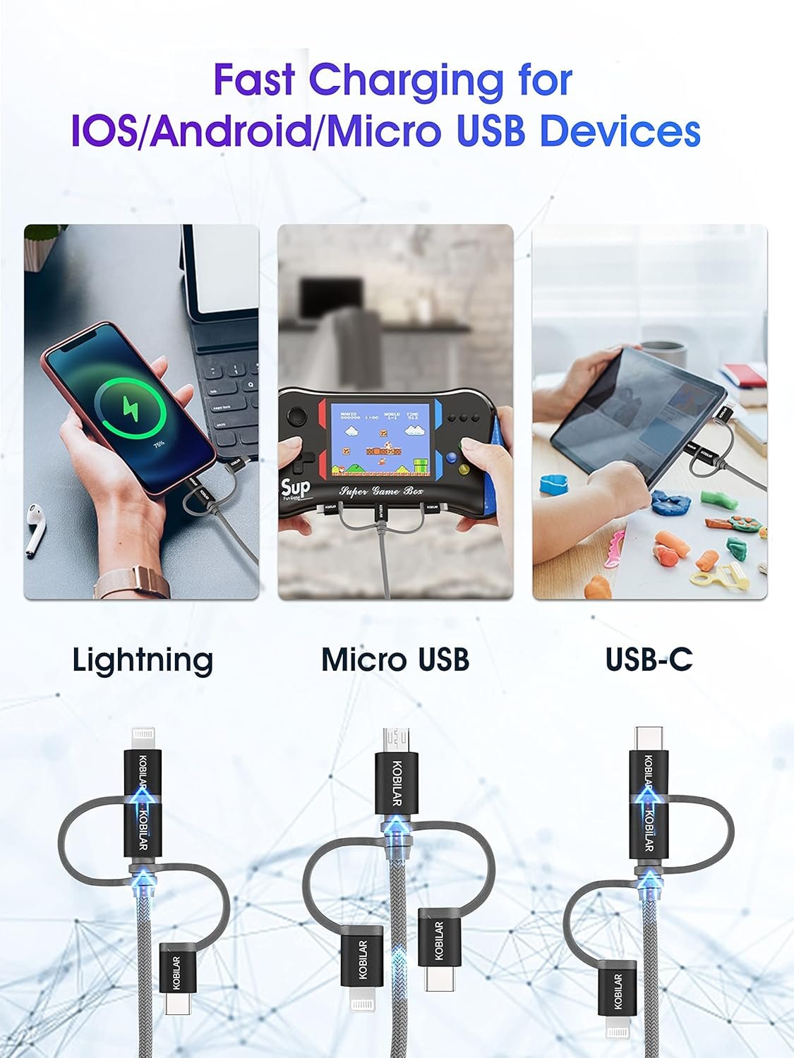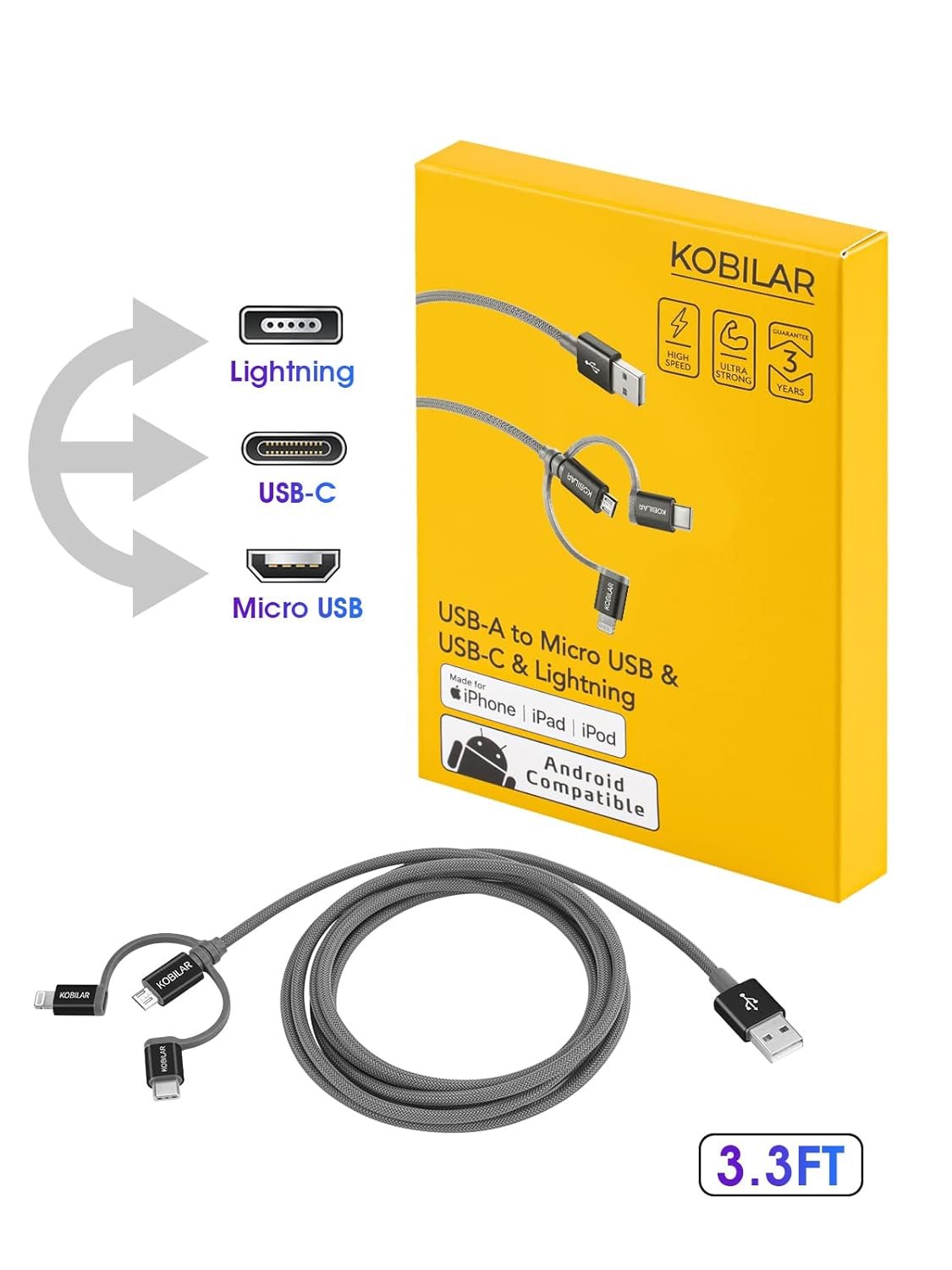 【Universal Compatible, MFI Certified】 MFi definition: USB-C and Lightning should be plugged into micro to work.Our cables are Apple MFI certified and undergo rigorous quality checks just to give you peace of mind. Perfectly compatible with iPhone, iPad, Samsung Galaxy, pixel, MacBook Pro/Air, Android, and other USB-related devices, making charging easier and more convenient.