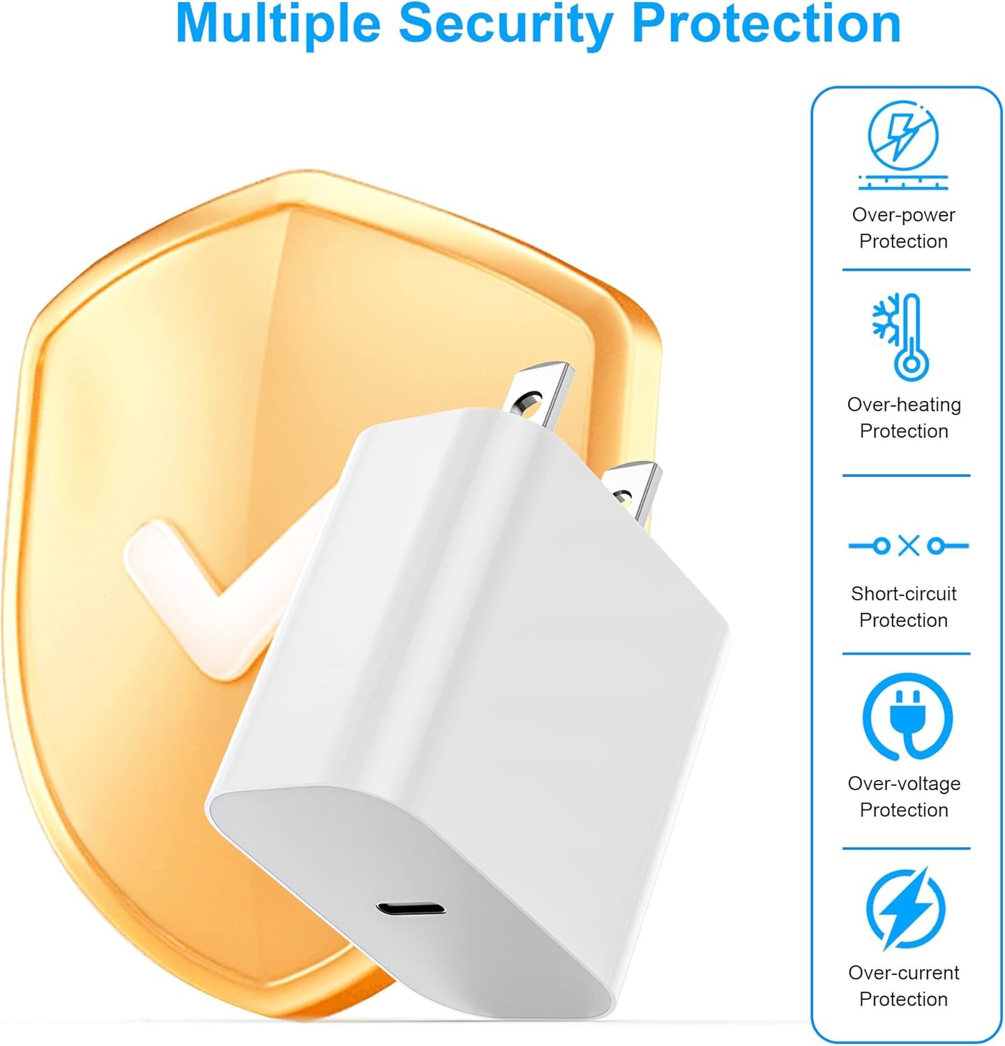 Equipped with USB‑C charger for fast charging at home, in the office, or on the go. This charger block is certified for safety protection, and it features a tough construction to protect against scratches. The charger internal chips protect your devices from Over Heating, Short-Circuiting and Over Charging.