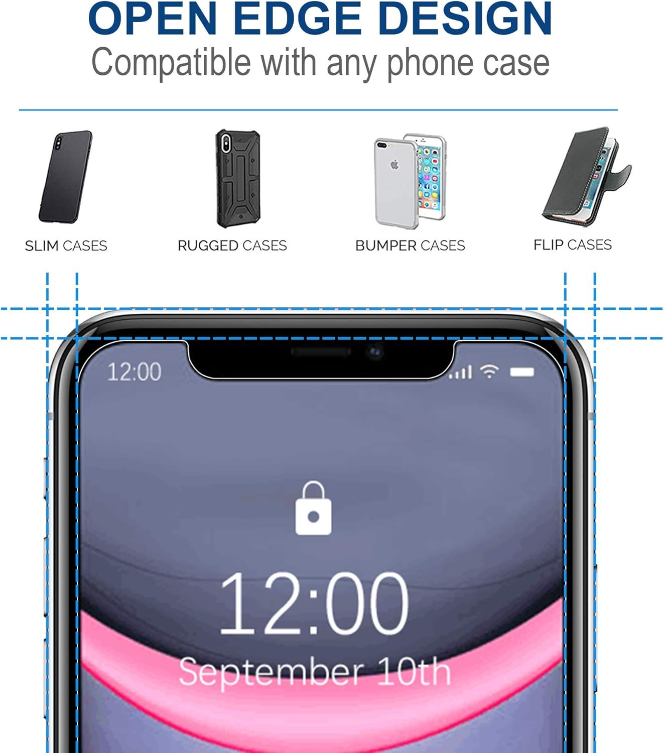 [Case-friendly Design] The screen protector leaves enough space for the case to protect your phone, the screen protector will not be squeezed out of the screen by the case. EXCEPT cases with hefty raised edges such as battery cases.