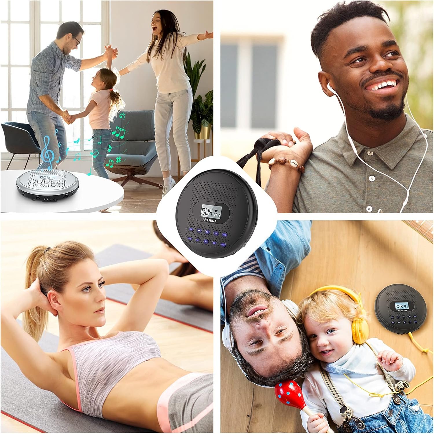 【Anti-Skip and Backlit Display】It has a anti-skip system so you can use it as a personal walkman cd player when you doing some exercising or driving. It includes a wire headphone that is suitable for bring it outside or listening music in a quit place. The backlit design and larger LCD display on the cd player can help you view the imformation clearly in the dark environment.