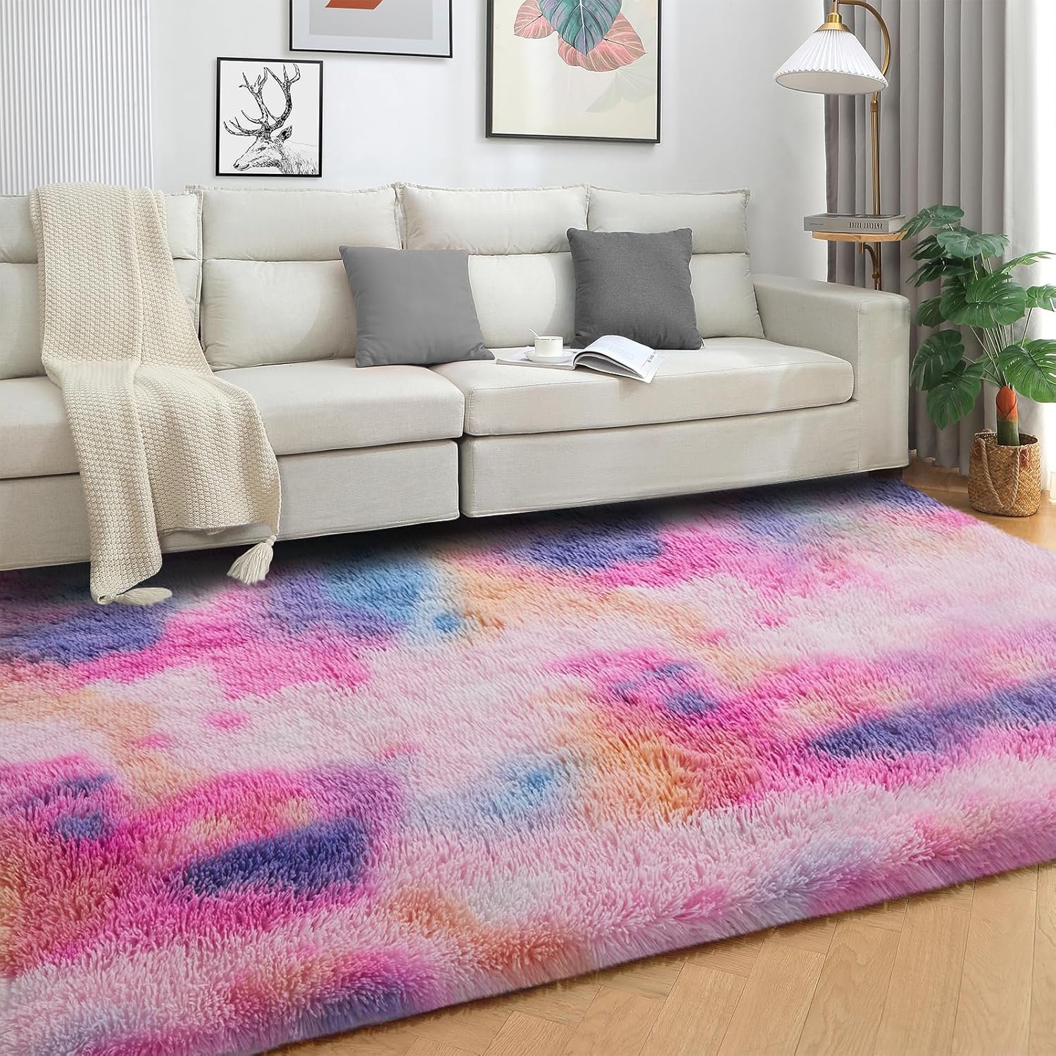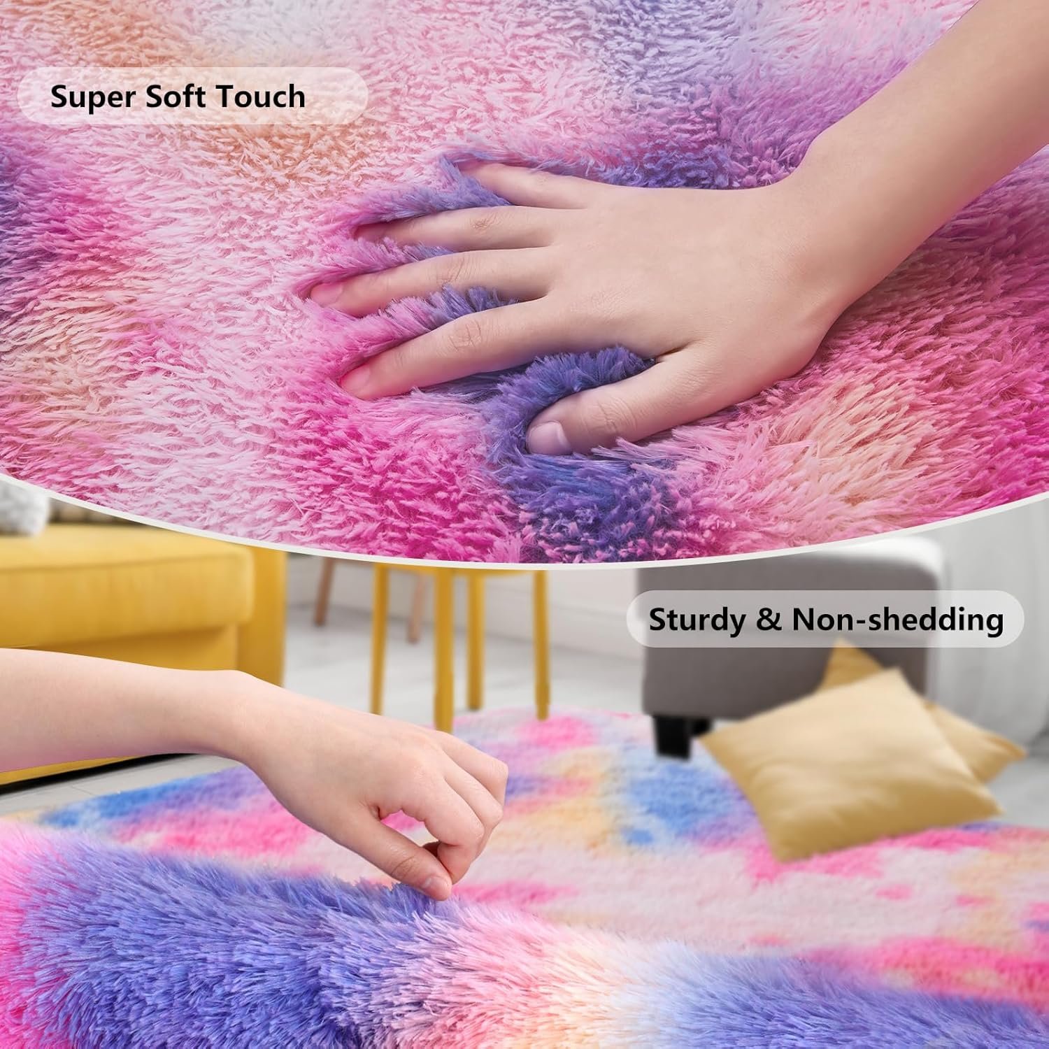 Ultra Soft Plush Fabric: Crafted from 100% thickened polyester, this area rug offers a luxurious, fluffy texture, enhancing comfort in bedrooms, living rooms, and nurseries