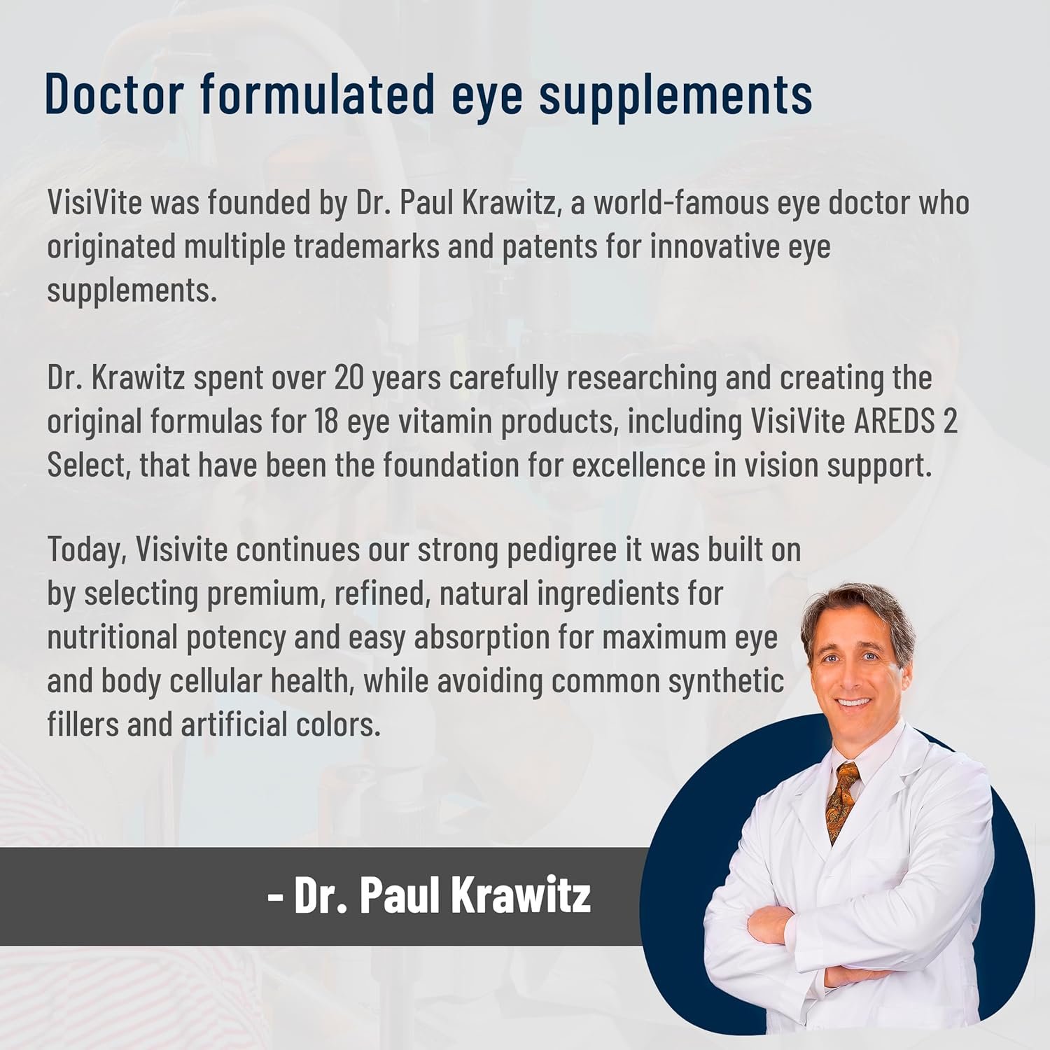 Trusted for over 20 years – Made in the USA in an FDA registered facility, Visivite has been a trusted supplier of Doctor formulated Eye Vitamins for more than 20 years.