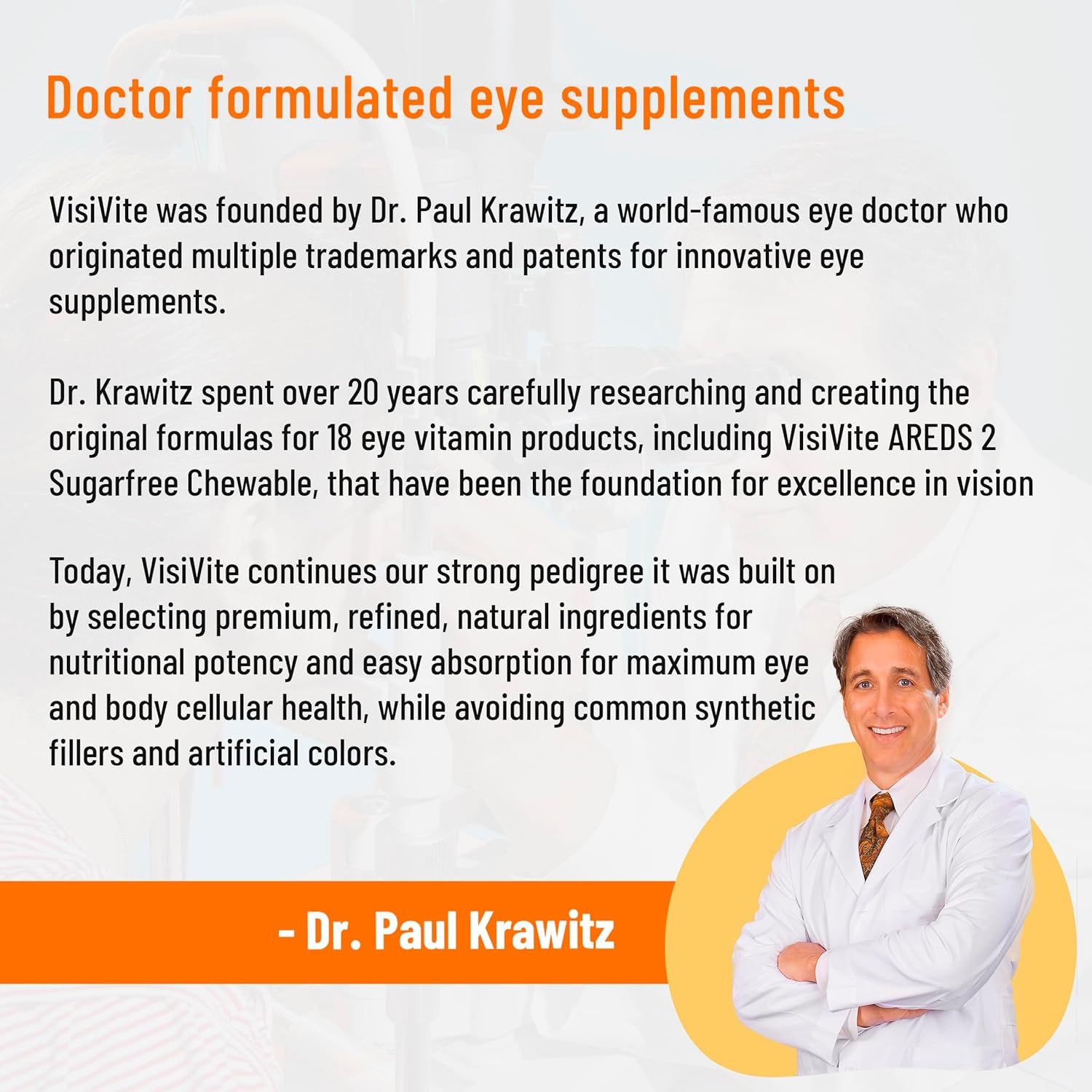 Sugar-Free Alternative to Lutein Gummies – A unique sugar-free AREDS 2 formula now in a tasty chewable tablet form. Our eye vitamins with Lutein include Zeaxanthin and other vitamins for max vision support & lutein eye health.