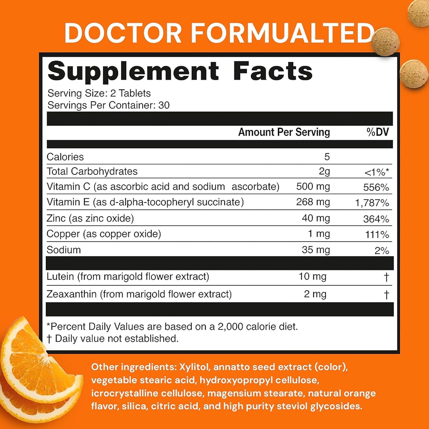 AREDS 2 Sugar-Free Eye Vitamins – Alternative to Lutein Gummies for Eyes – Lutein for Eye Health – Premium Sugar-Free Eye Vitamins – Eye Care Supplements for Adults (Chewable Tablets)