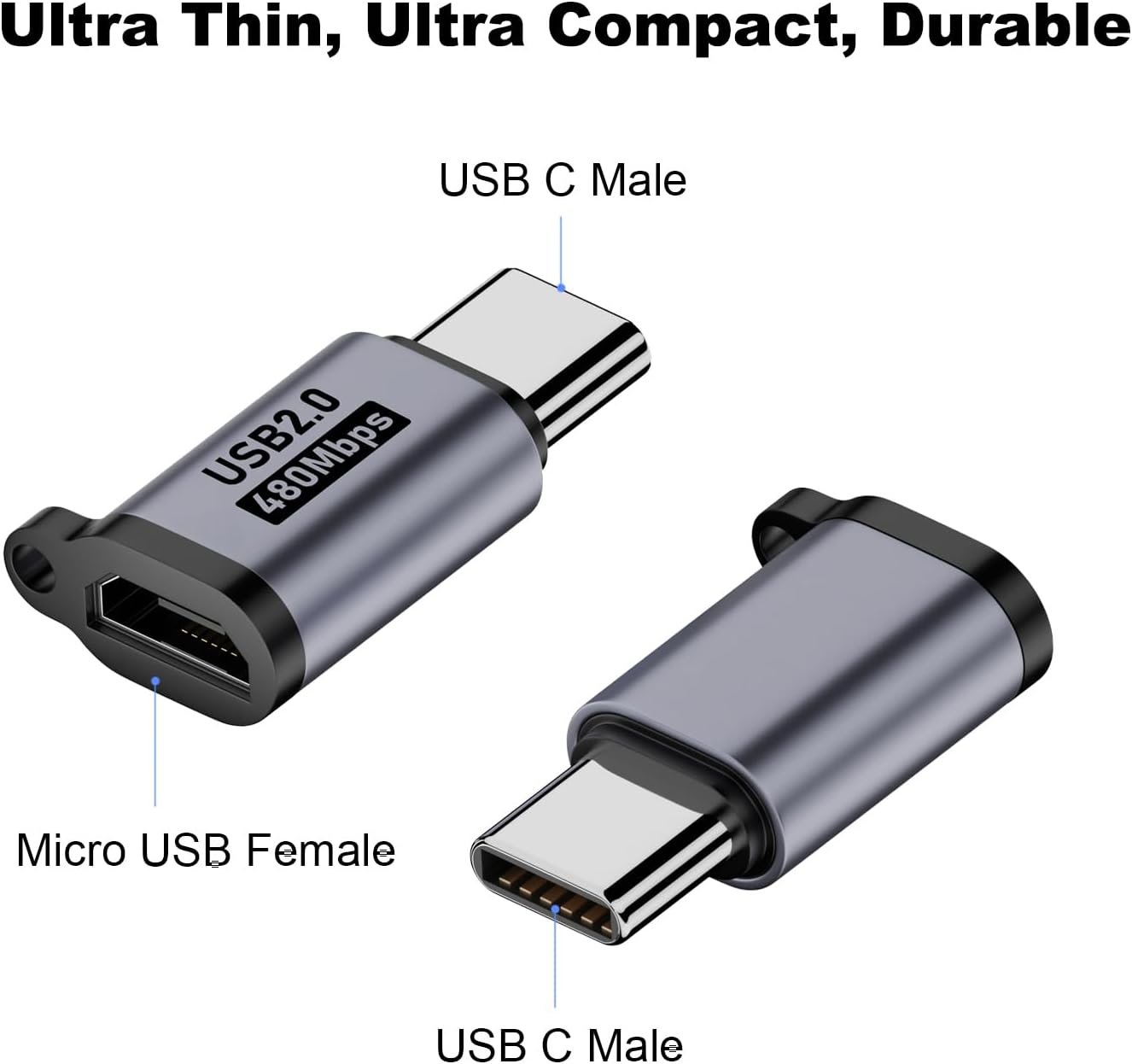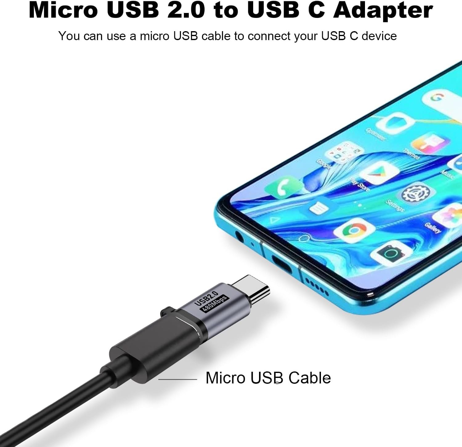 【Charging and Data Transfer】The micro USB 2.0 adapter supports up to 2.4A fast charging, and supports 480Mbps(40-60MB/S) data transfer speed.