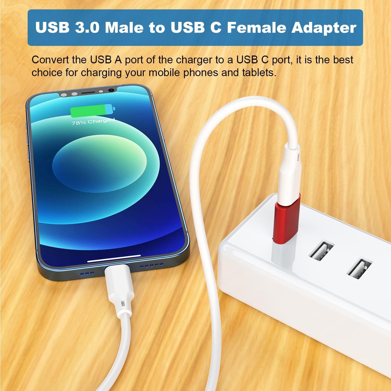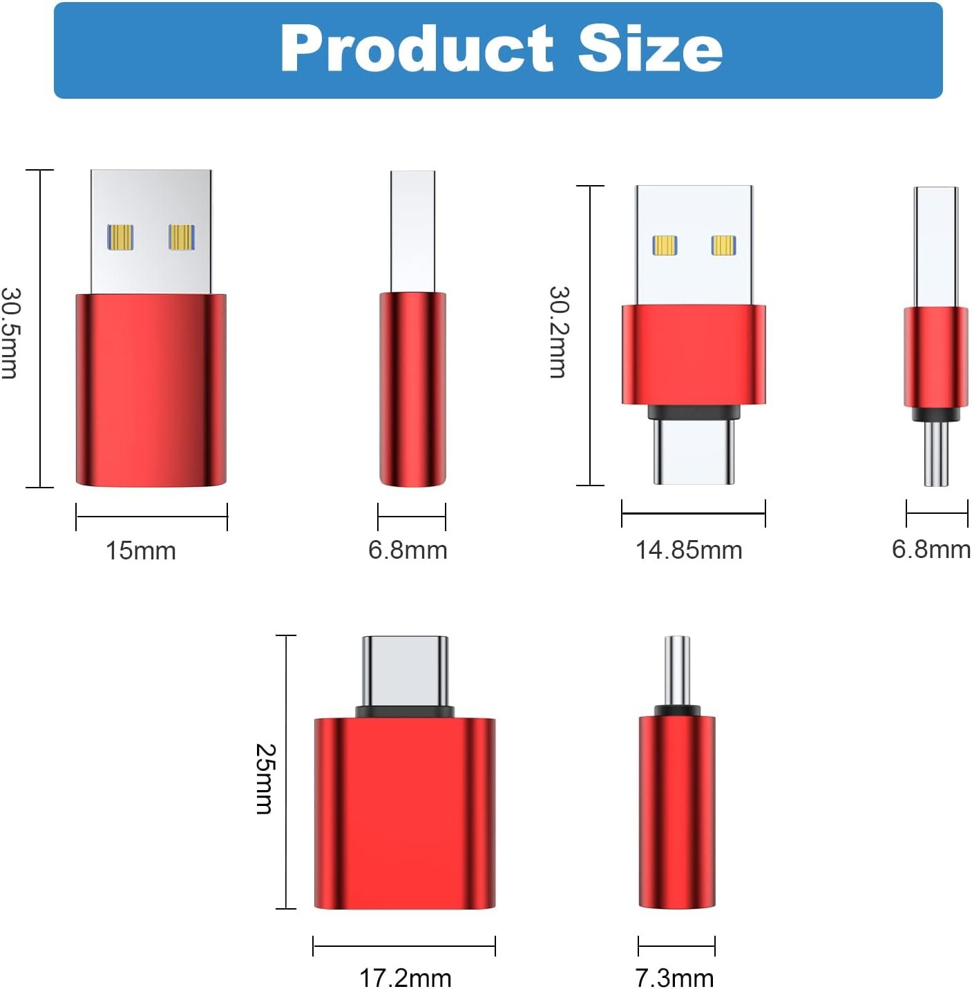 【What you’ll get】2 x USB A male to USB C male adapter, 2 x USB male to USB C adapter, 2 x USB C male to USB adapter. And they can be connected to each other for charging and data transfer.