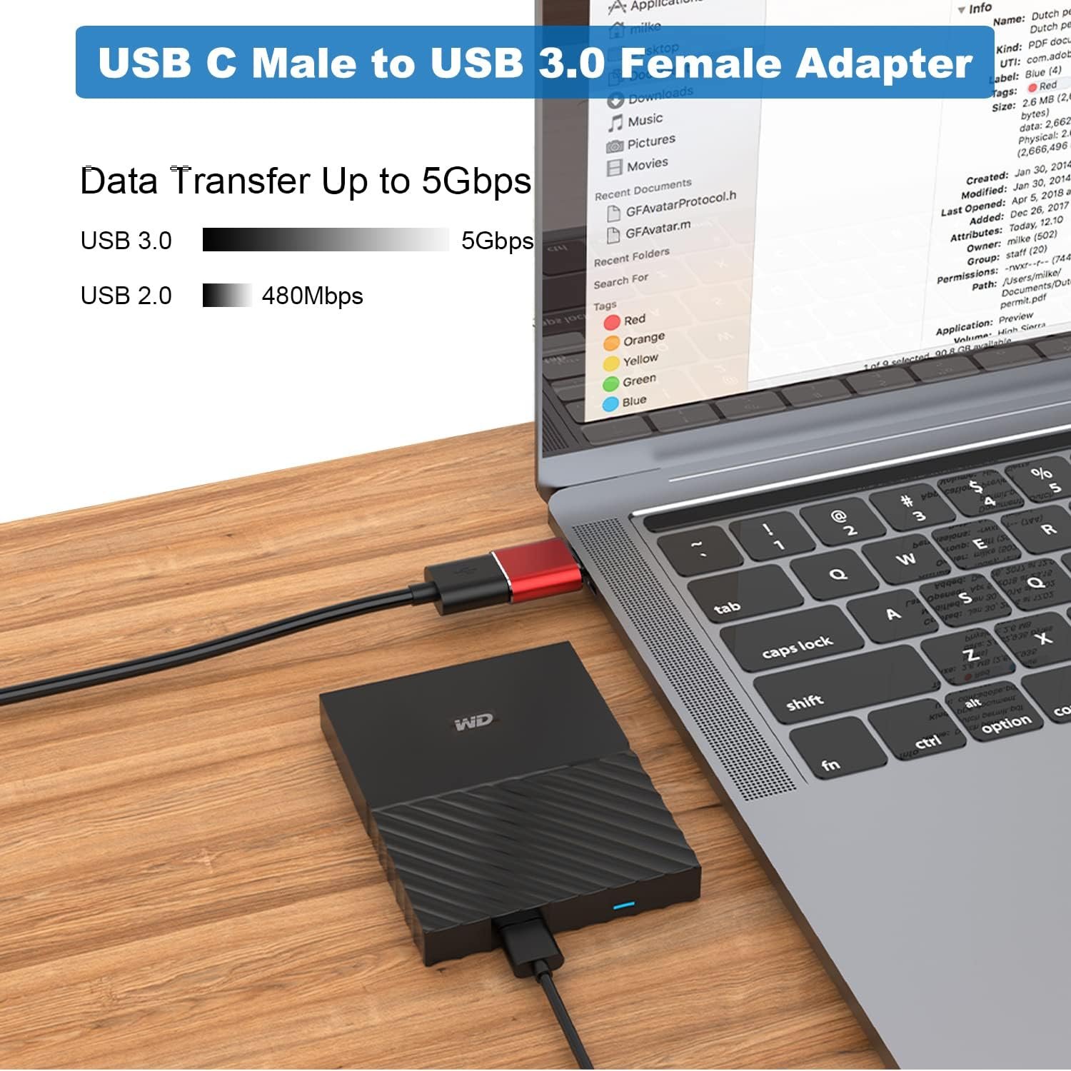 【USB C Male to USB 3.0 Female Adapter】Convert the USB C port of the PC, laptop or other devices to a USB A port, and then connect the flash drive or other standard USB A device. It can also provide a maximum data transfer rate of 5Gbps.