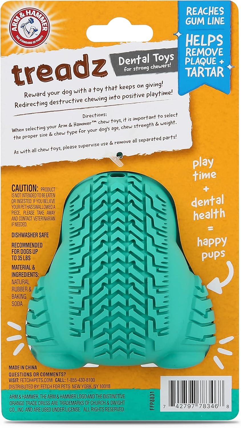DOUBLES AS A DENTAL TOY FOR DOGS – This durable dog’s toy’s tire-like treads help remove tartar and plaque build up in your dog’s teeth, maintaining a clean mouth and proper dental hygiene for your pup. Plus, it’s infused with Arm & Hammer Baking Soda