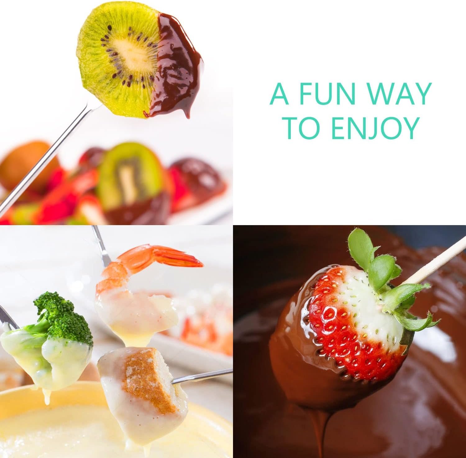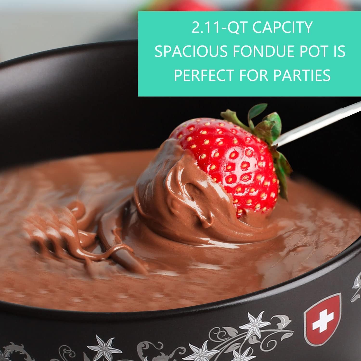 FONDUE FUN FOR EVERYONE & EASY CLEAN-UP – The fondue pot measures 8.85 inches in diameter and 3.74 inches tall and has a 2.11-qt (2000ml volume) capacity that can accommodate 6-8 fondue lovers, you can share the fondue fun with your friends and loved ones. After use, the fondue pot is easy to clean, as it is dishwasher safe or hand washed