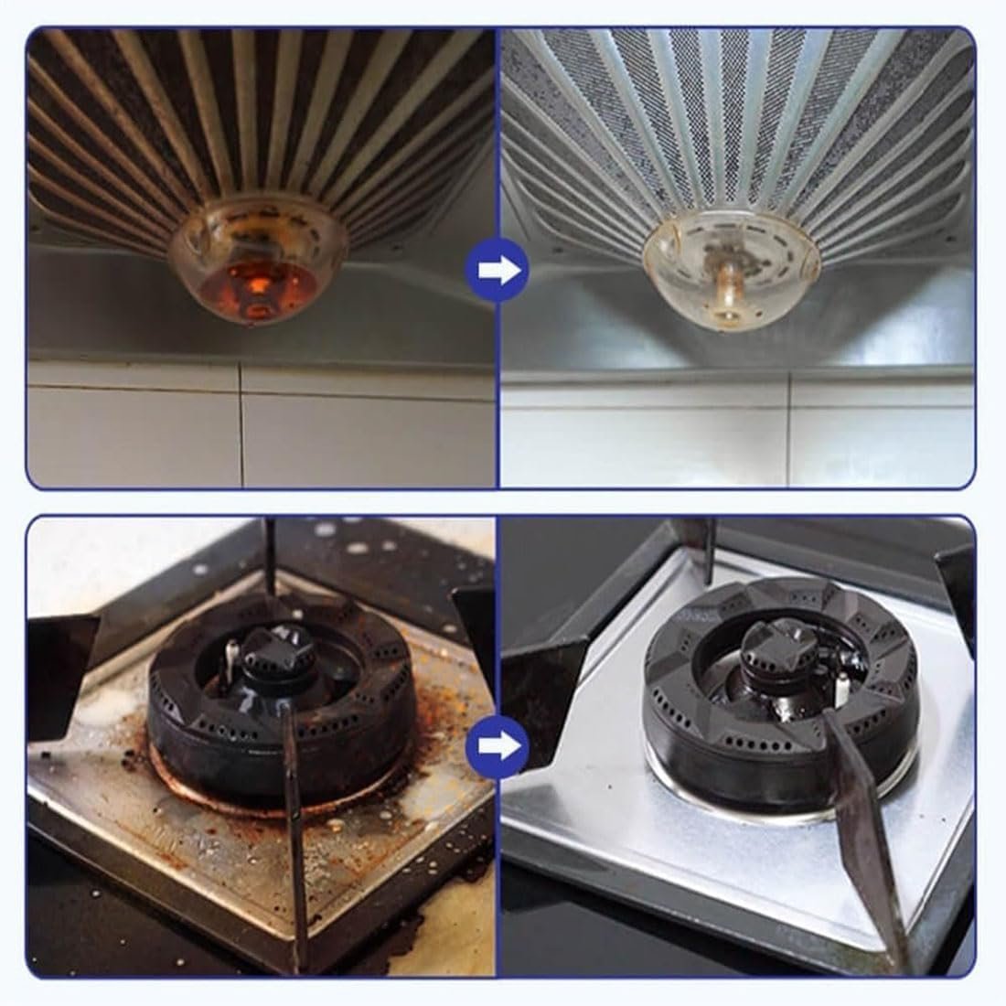 Multi-Purpose Cleaner—Household heavy oil stain range hood cleaning agent works on any material including used to clean stove top, range hood, stove, backsplash, kitchen counter and cabinets, oven, sink, microwave, etc.