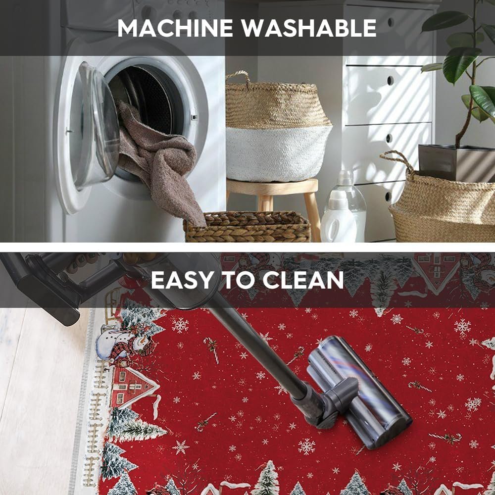 AREA RUGS WASHABLE:The washing machine and vacuum cleaner is friendly to these area rug. Rugs are quick and easy to clean and maintain which is durable, just regular vacuuming and gently blotting out minor stains with a mild detergent or carpet cleaner. The washing machine and vacuum cleaner is friendly to the area rugs. A clean rug for living room can be obtained without taking a long time.