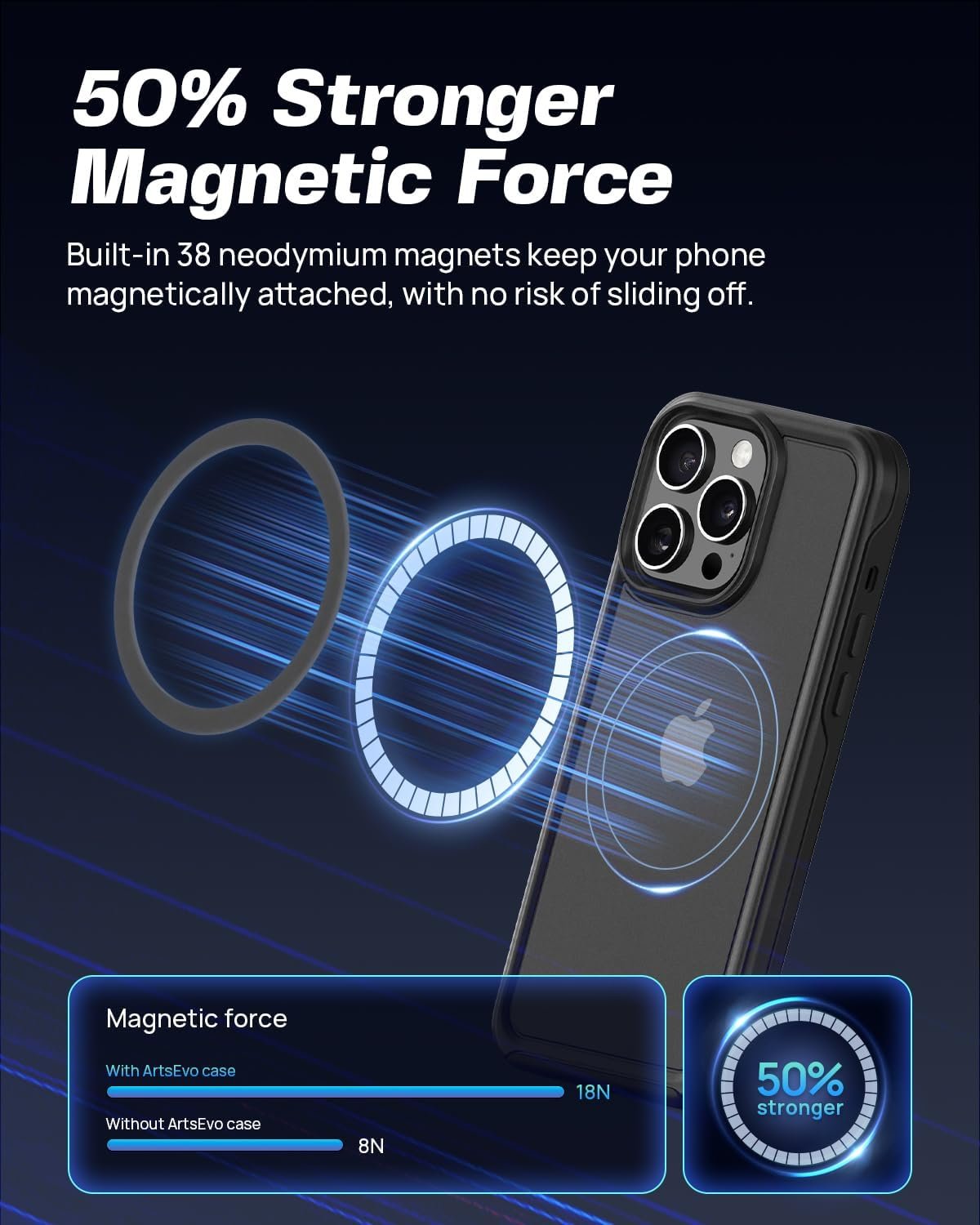50% Stronger Magnetic Force: Experience superior magnetic grip with our advanced neodymium magnets, delivering a 50% stronger attachment. Ensure your phone remains securely affixed to magnetic wallets, stands, wireless chargers, credit cards, or car mounts. Eliminate concerns of slipping or sliding—enjoy a steadfast and dependable hold with every use.