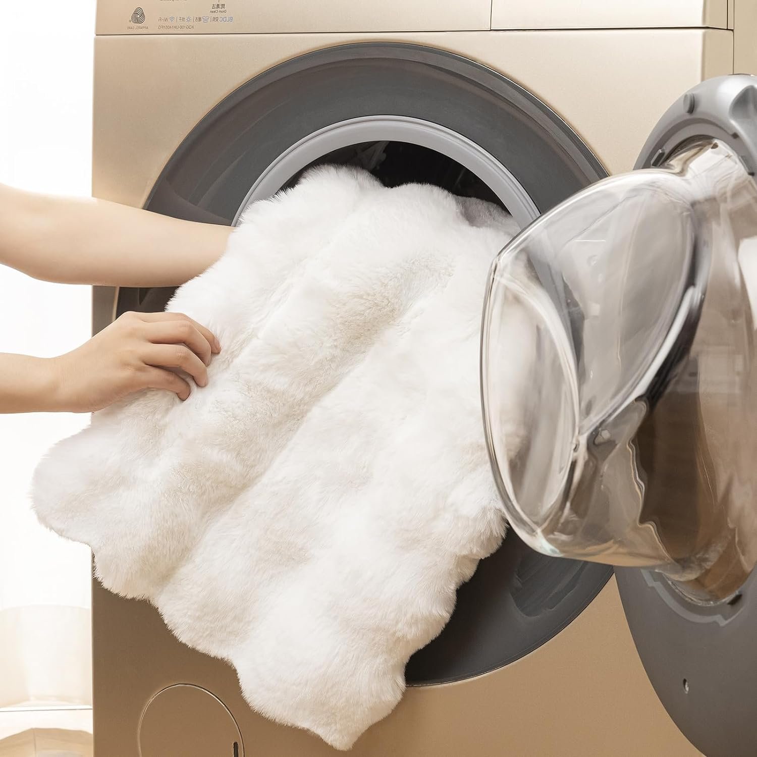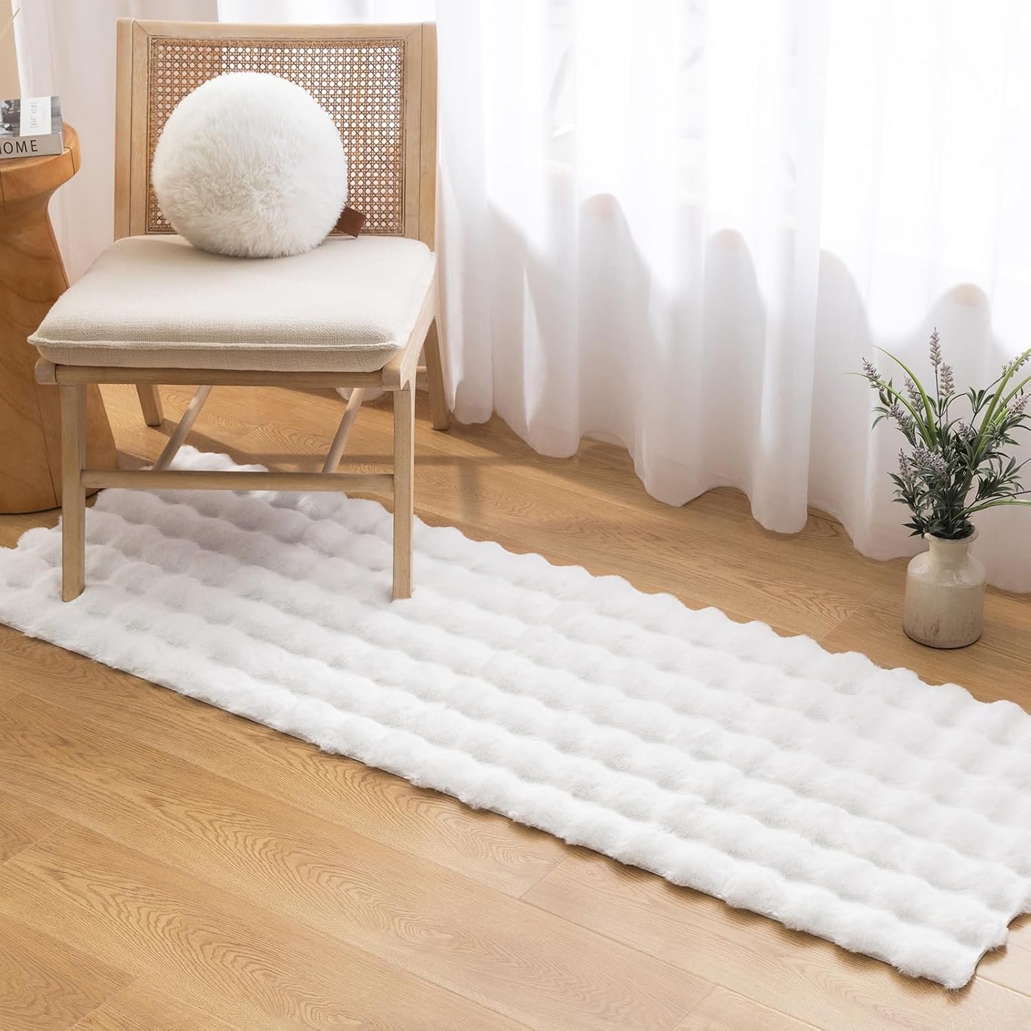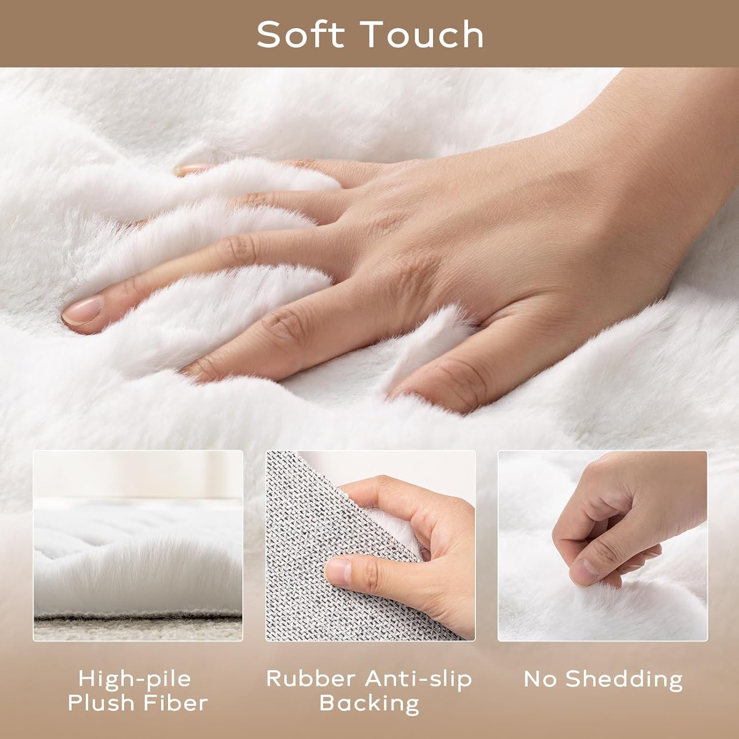 Faux rabbit fur rug : Top-quality faux rabbit fur, providing super soft and silky touch. Transform your bedroom or living room into a cozy haven with our fluffy and shaggy faux fur rug. Airy 3D bubble shape, light and agile as snowballs. Simple but no monotonous, easy to create a warm and cozy atmosphere.