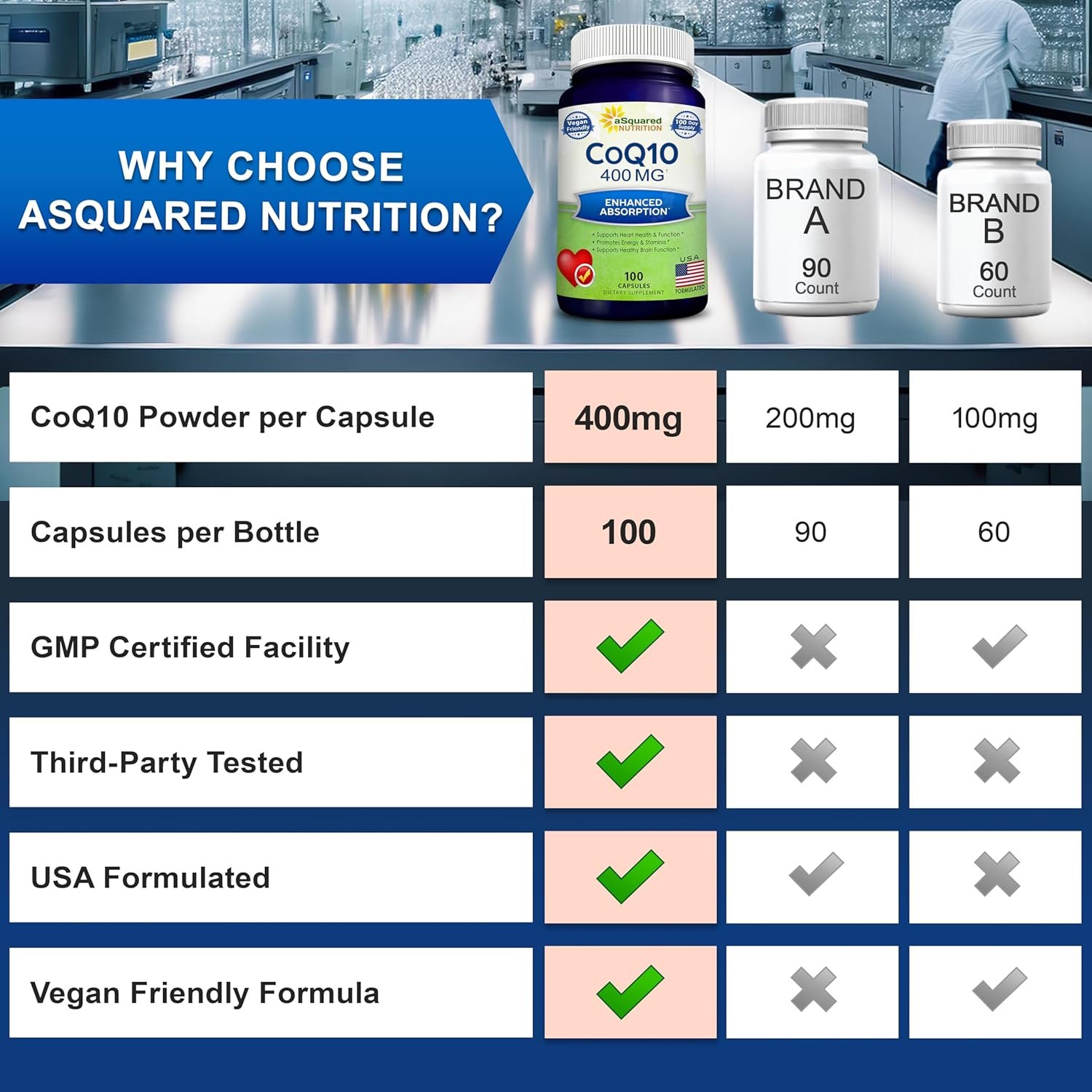 BEST VALUE AVAILABLE: You receive 100 vegetable capsules of max strength CoQ10 (400mg powder yielding 6% ubiquinone-10) for a FULL 100 day supply. Others offer way fewer capsules, gummies, pills or softgels, with only 300mg, 200mg or 100mg of CoQ10 per daily dosage for a more expensive price. Also try our pure Turmeric Curcumin, Resveratrol, Ceylon Cinnamon (100% Natural), DHEA 100mg, Berberine, Milk Thistle 1000mg & Panax Ginseng. *