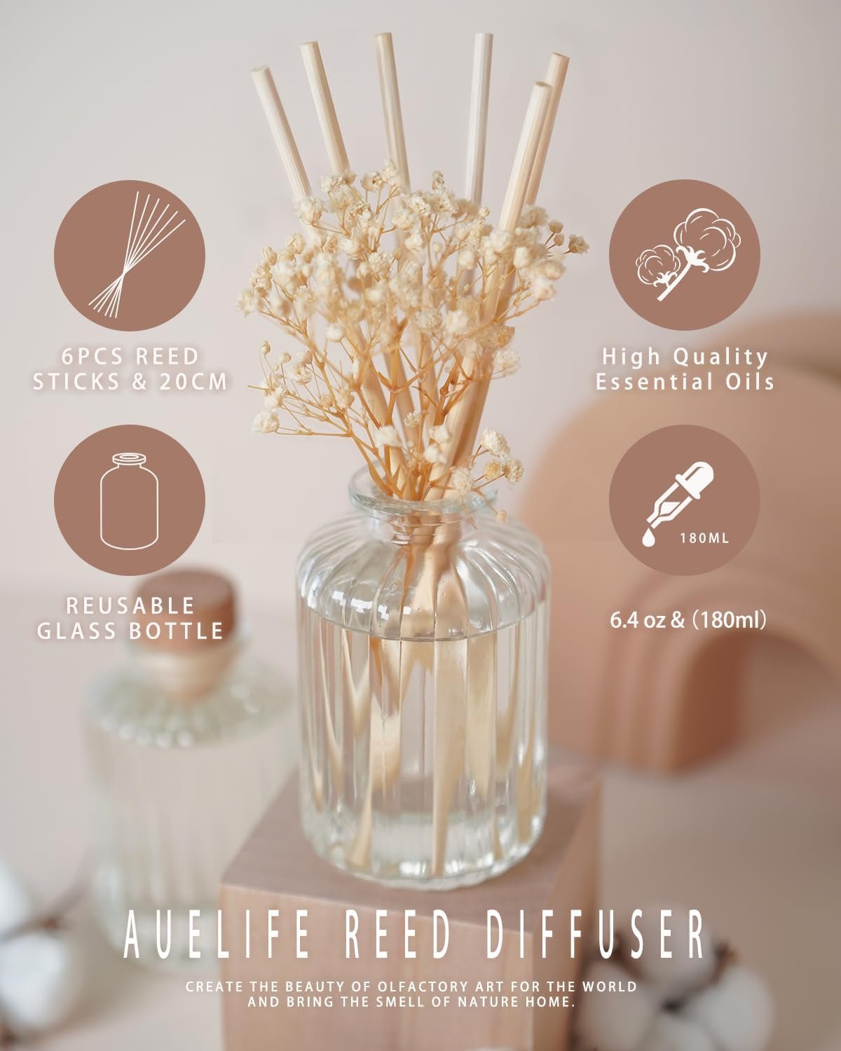Auelife Reed Diffuser Set for Home, 6.4 oz Cashmere Vanilla Scented Diffuser with Sticks Preserved Real Flower Reed Diffuser Home Fragrance Essential Oil Reed Diffuser for Bathroom Shelf Decor