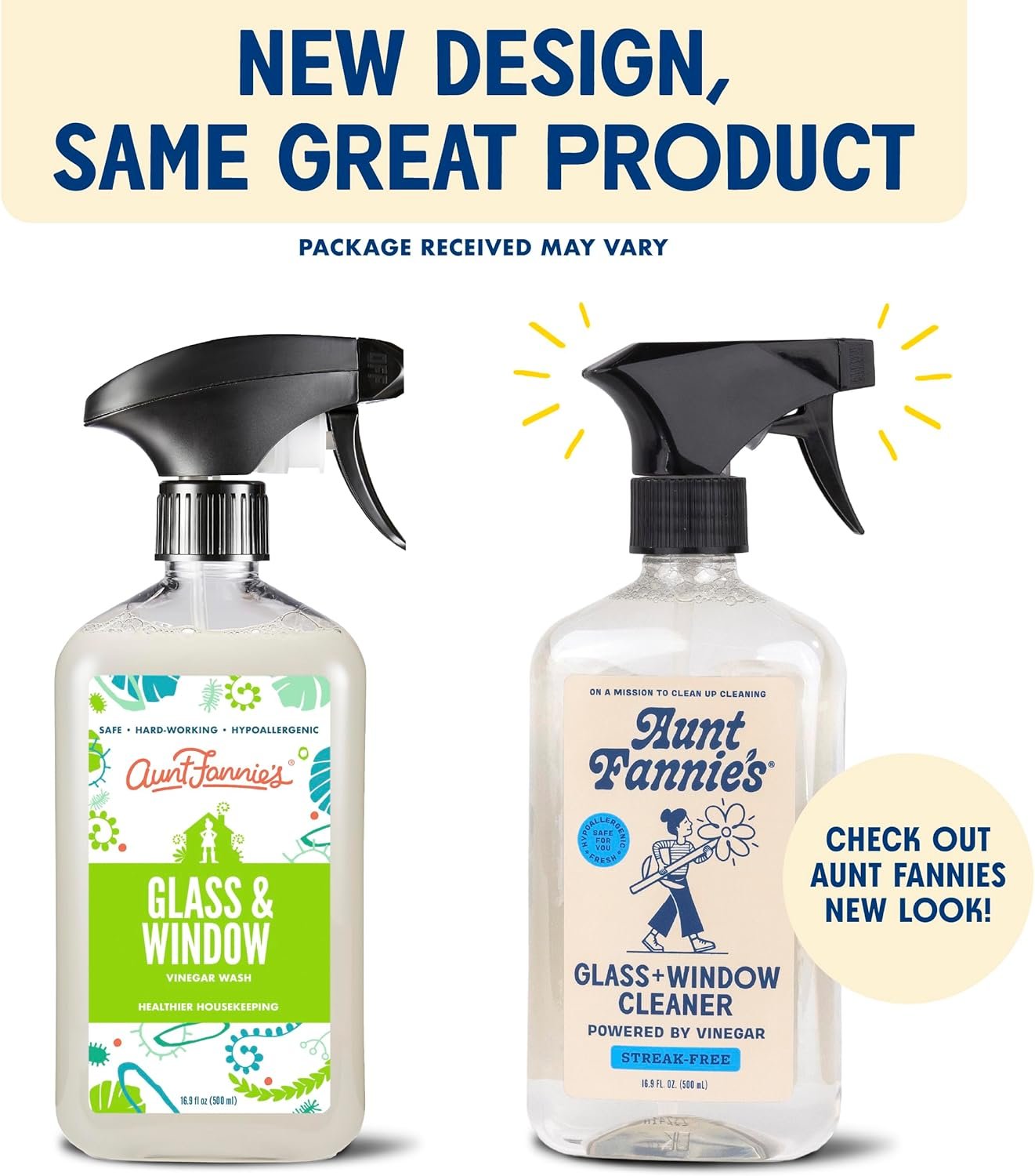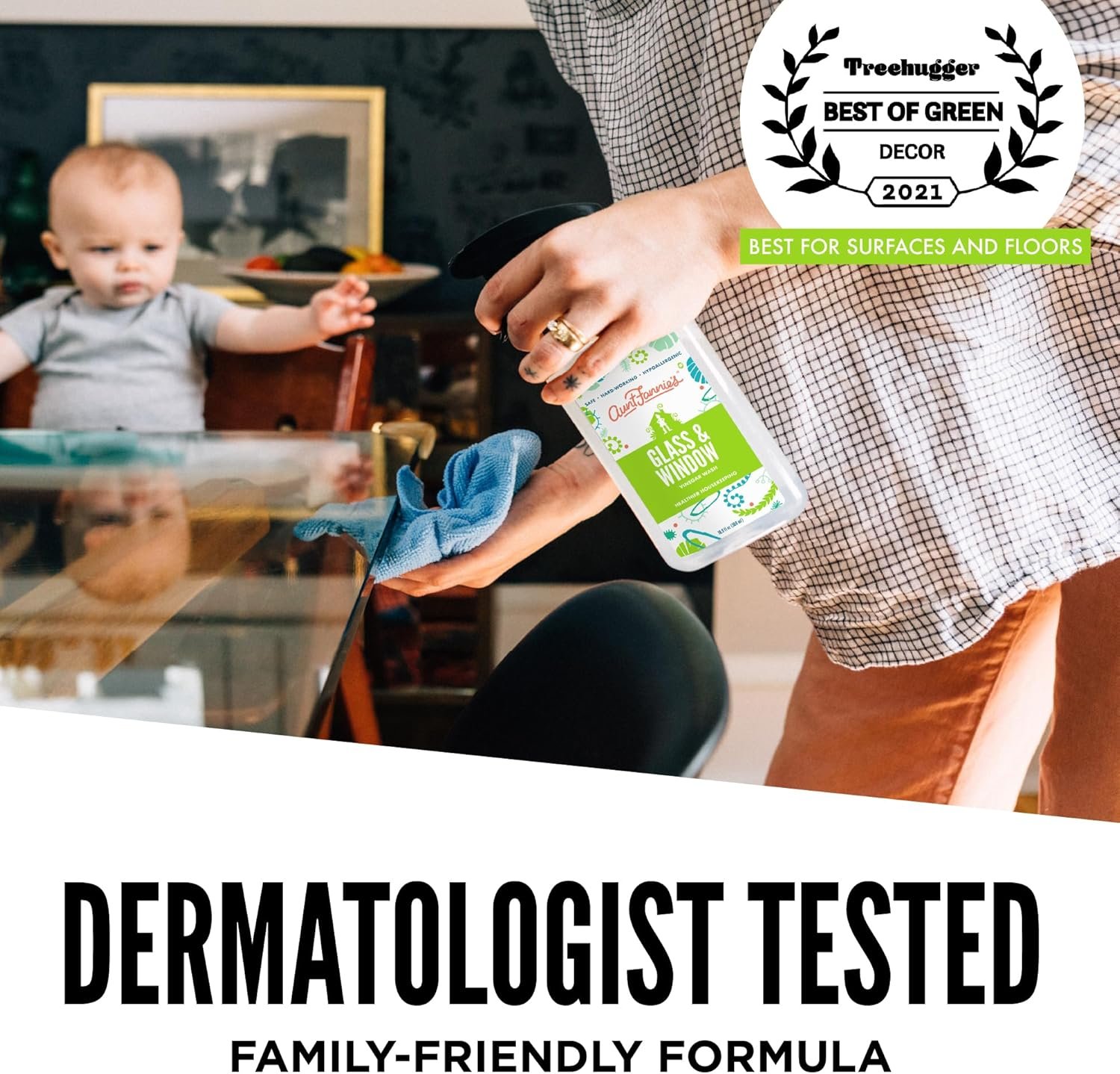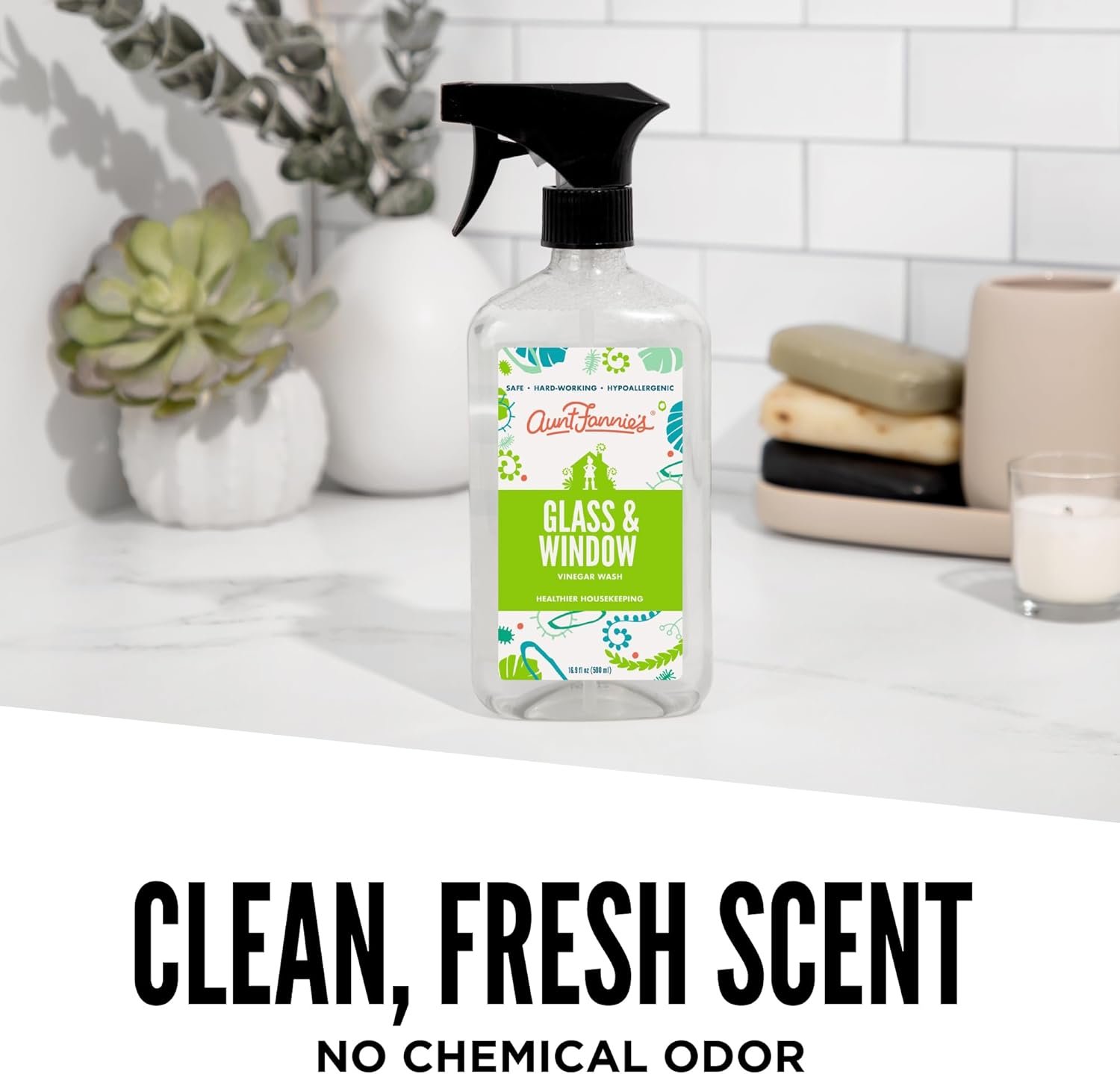 Aunt Fannie’s Glass and Vinegar Cleaning Spray: Our formula uses the power of vinegar and plant-based cleaners to remove smudges, fingerprints, rain spots, oil, and dirt