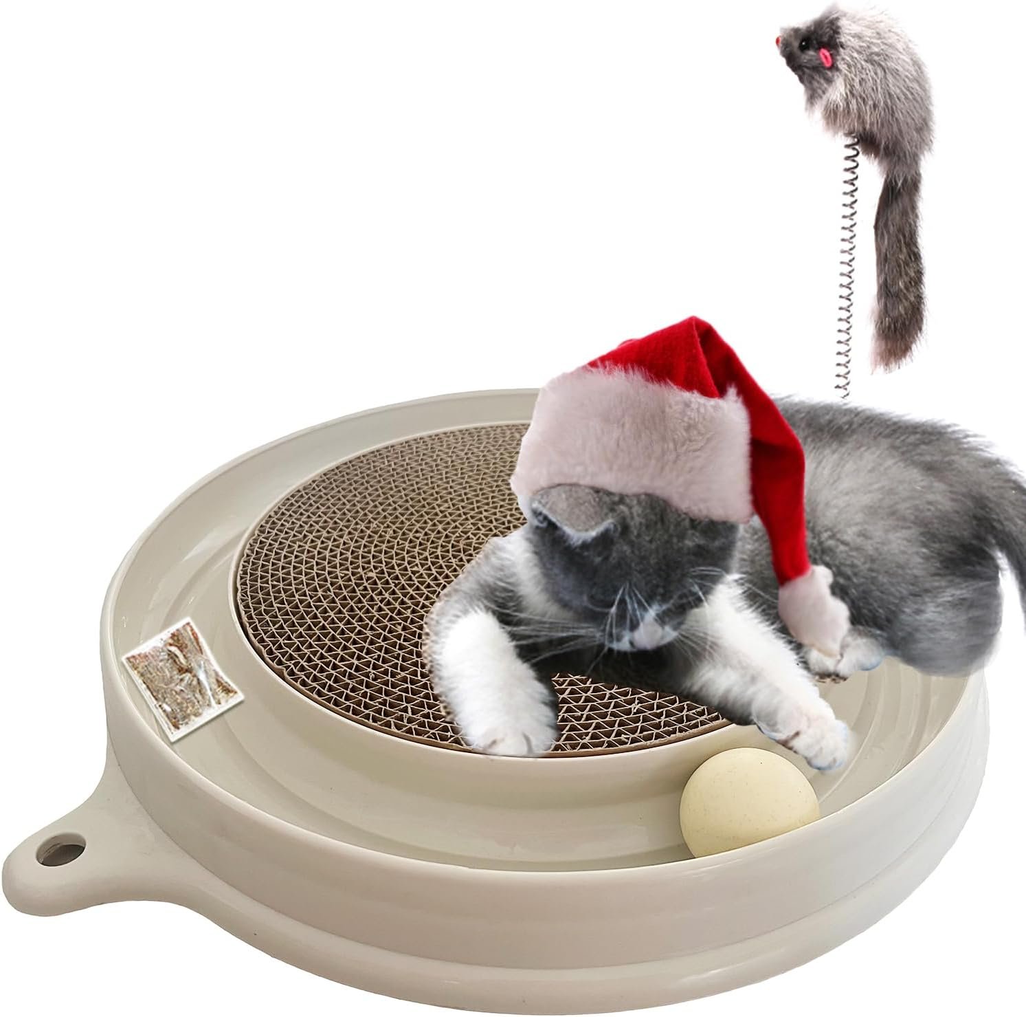 1 base (13″ diameter), 1 scratch pad and 1 ball and 1 Mouse Swatter; place ball in track for hours of fun – entertain your cat and keep away your furniture from scratching!