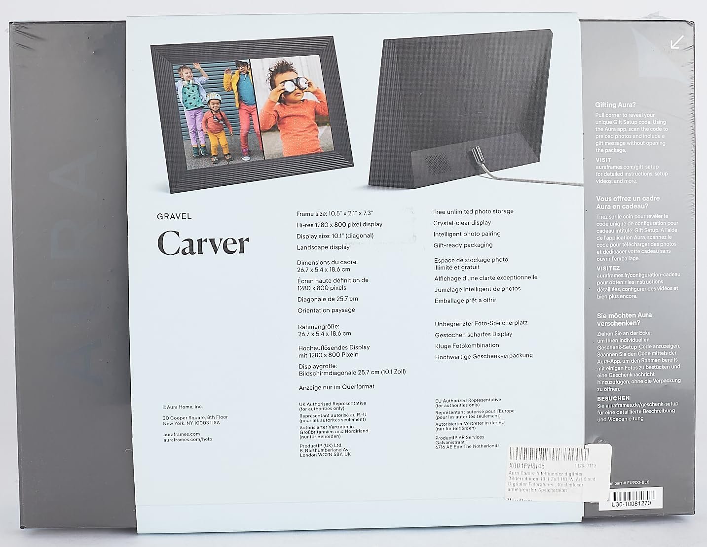TOP-RATED WIFI DIGITAL PHOTO FRAME: Millions of customers are delighted by Aura as the easiest way to share and display photos with loved ones. Recommended by The New York Times/Wirecutter, Wired, and Oprah’s Favorite Things.