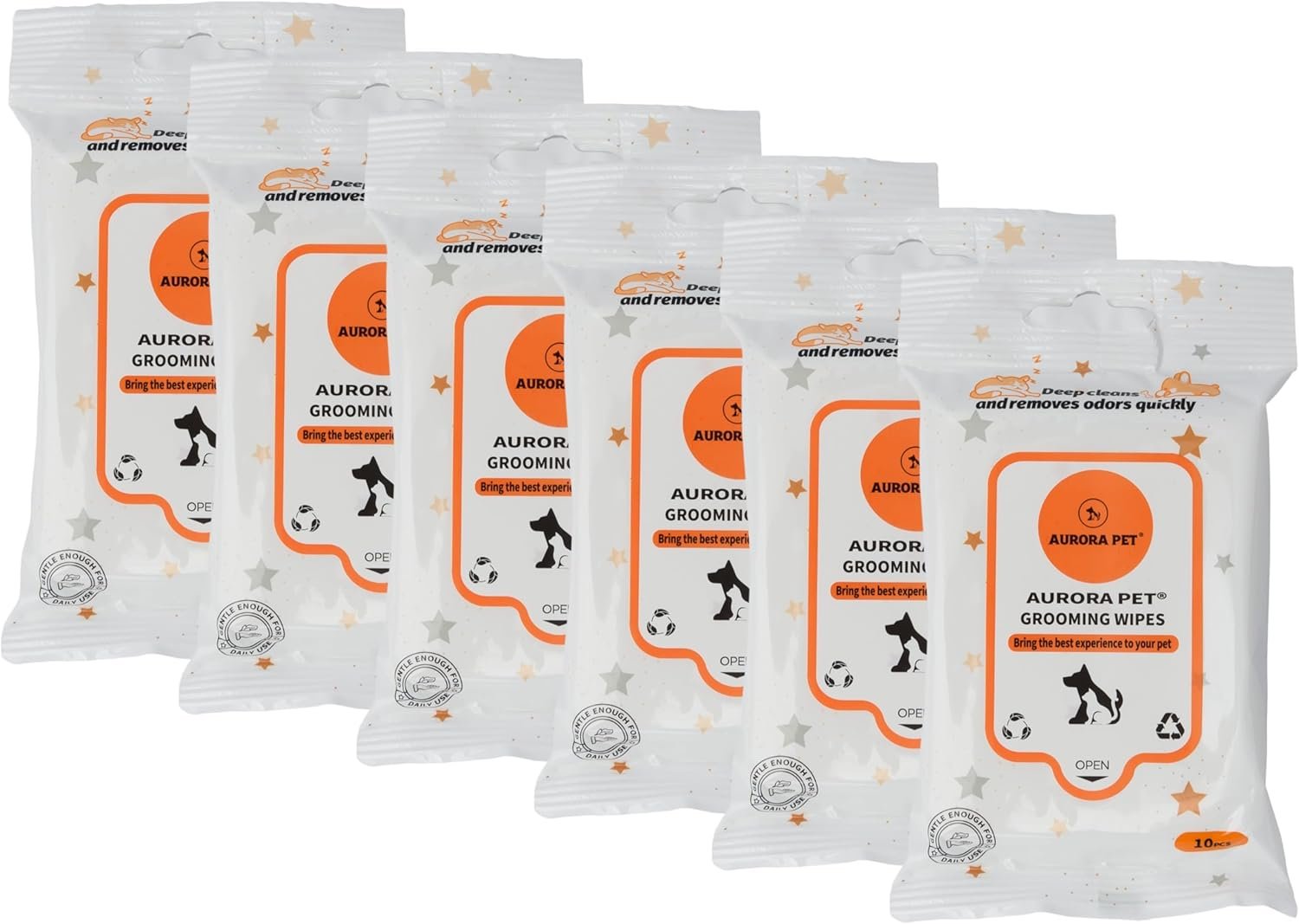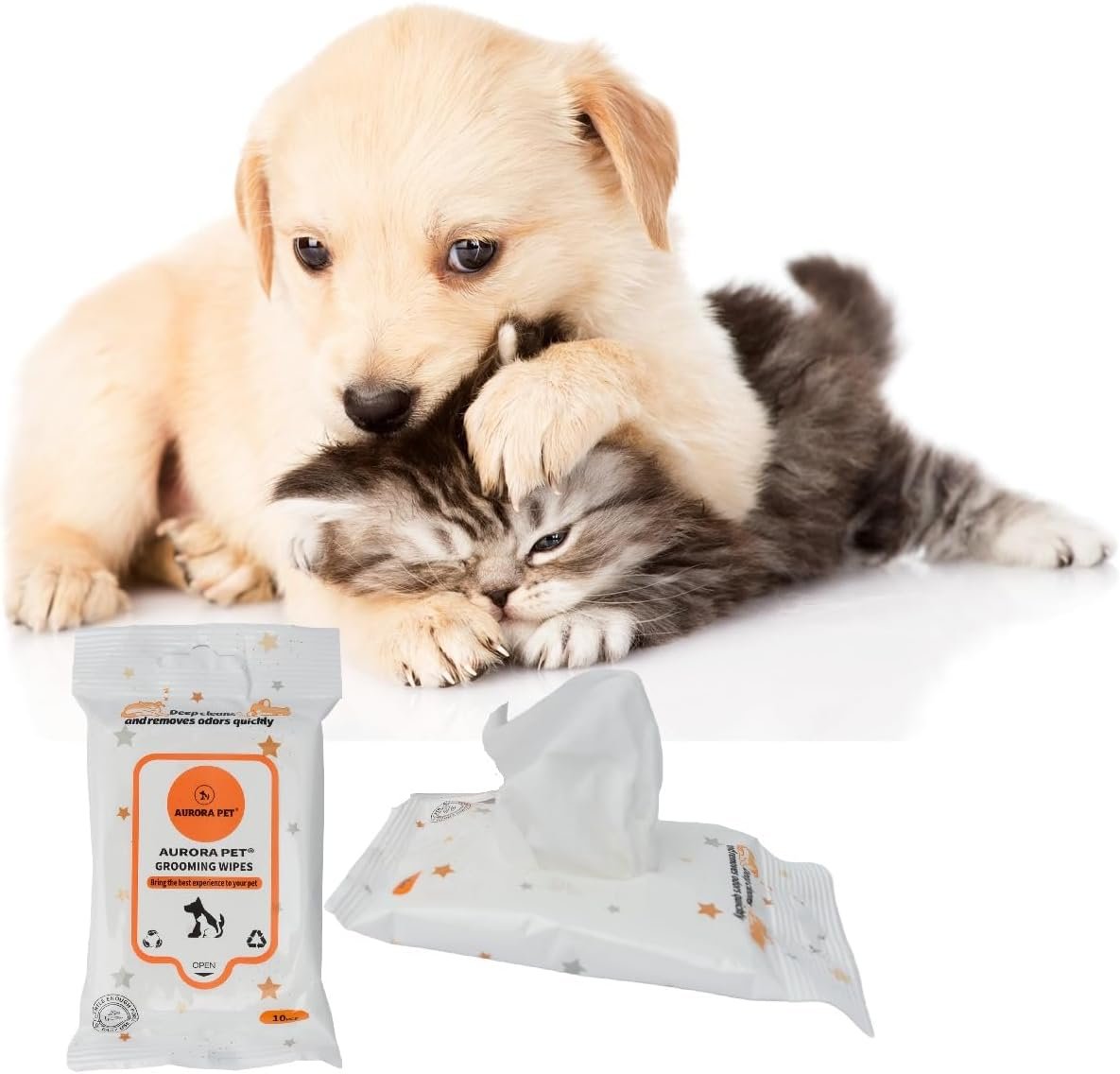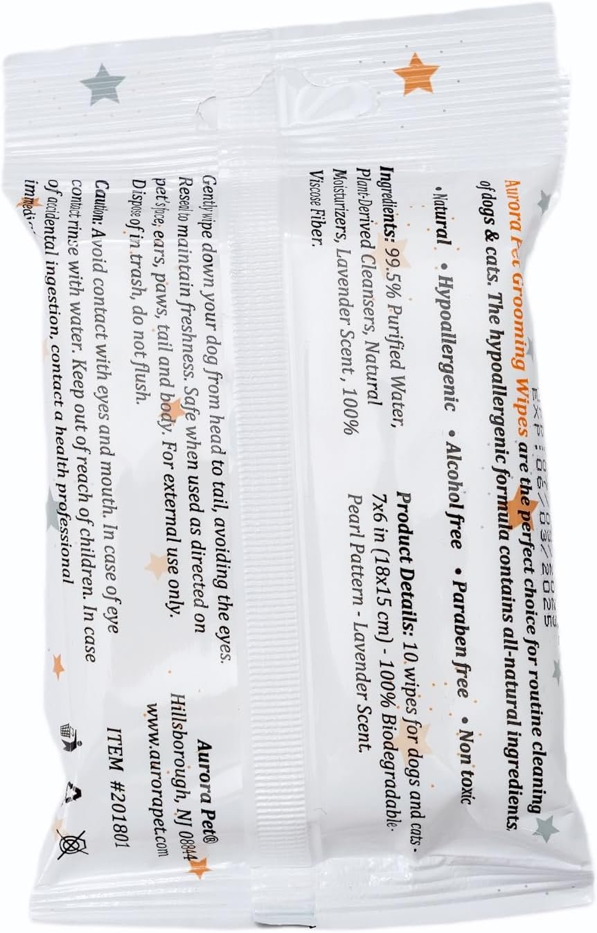 Keep your pet pooch and kitty clean, shiny and healthy with Aurora Pet Hypo-Allergenic Paraben-Free Cat and Dog Grooming Wipes! Our plant-based pet grooming wipes with simple ingredients won’t leave behind a sticky residue. Made with no alcohol, NO sulfates, no chlorine and no parabens for a gentle yet effective clean. Promotes skin health, safe to use on faces, paws, coats, behinds and more! Moisturizes your pets fur and skin with every wipe. Leaves your furry friend feeling clean, refreshed, and smelling great for longer. Designed for everyday use, safe & gentle for all ages from puppies & kittens to senior pets.