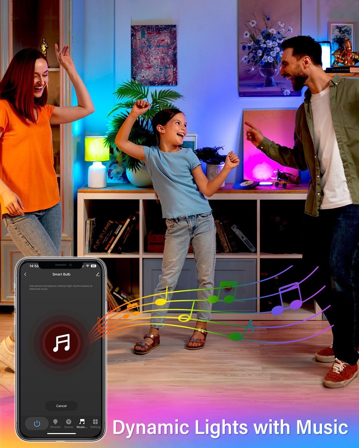 Music Sync: smart candelabra light bulbs sync bias lighting to your favorite song and shows how neon changing with the rhythm. It provides 16 million colors, 8 scenes,make a stronger viewing experience.