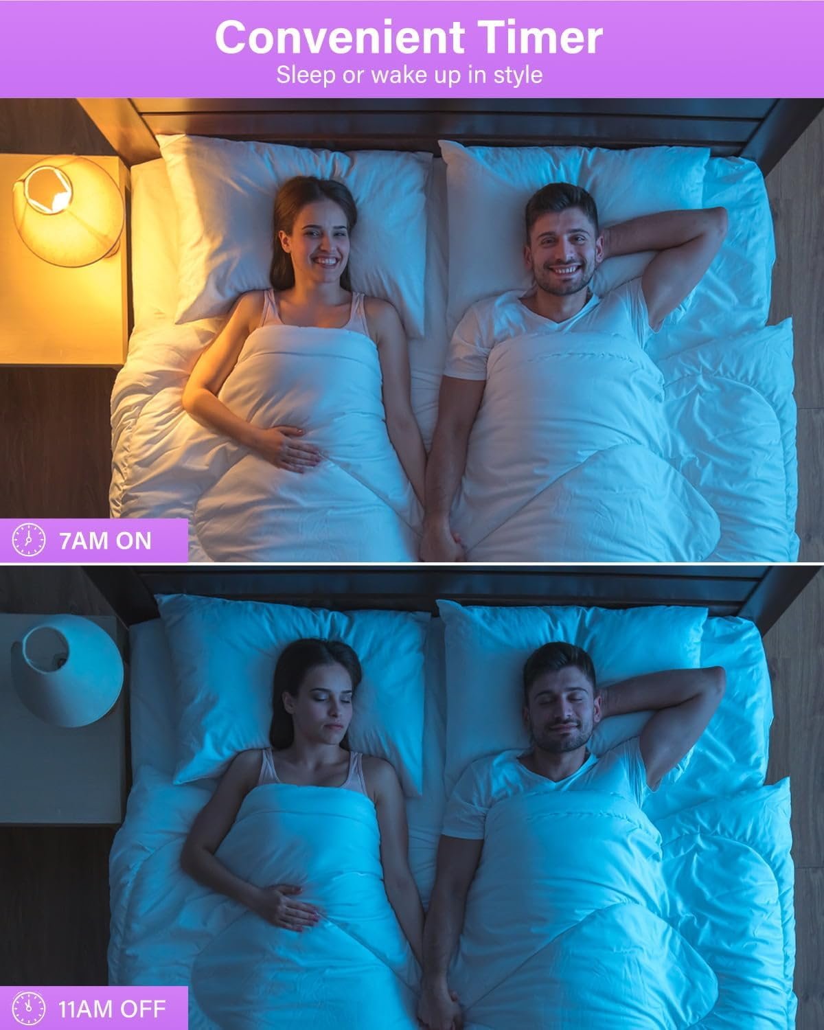 Set Schedule Color Light Bulb: Set the smart e12 led light bulbs to come on in the morning, wake up by a smooth light. Set the lights turn off gradually in the night, so you never have to worry whether you’ve left any energy saving light bulbs on.