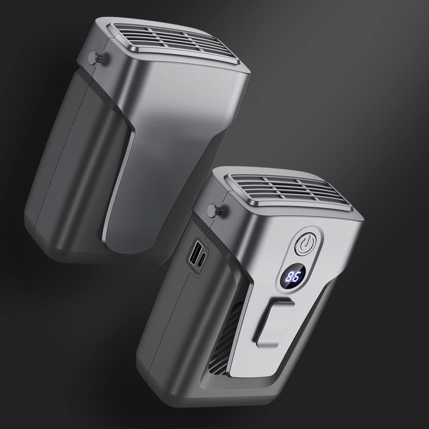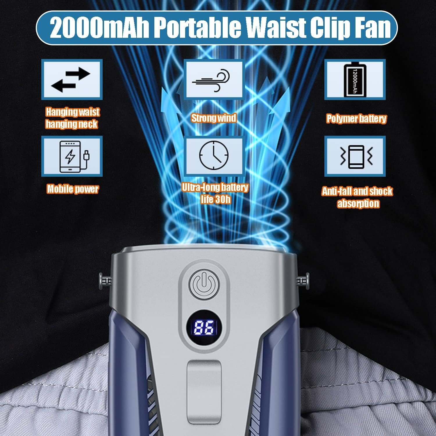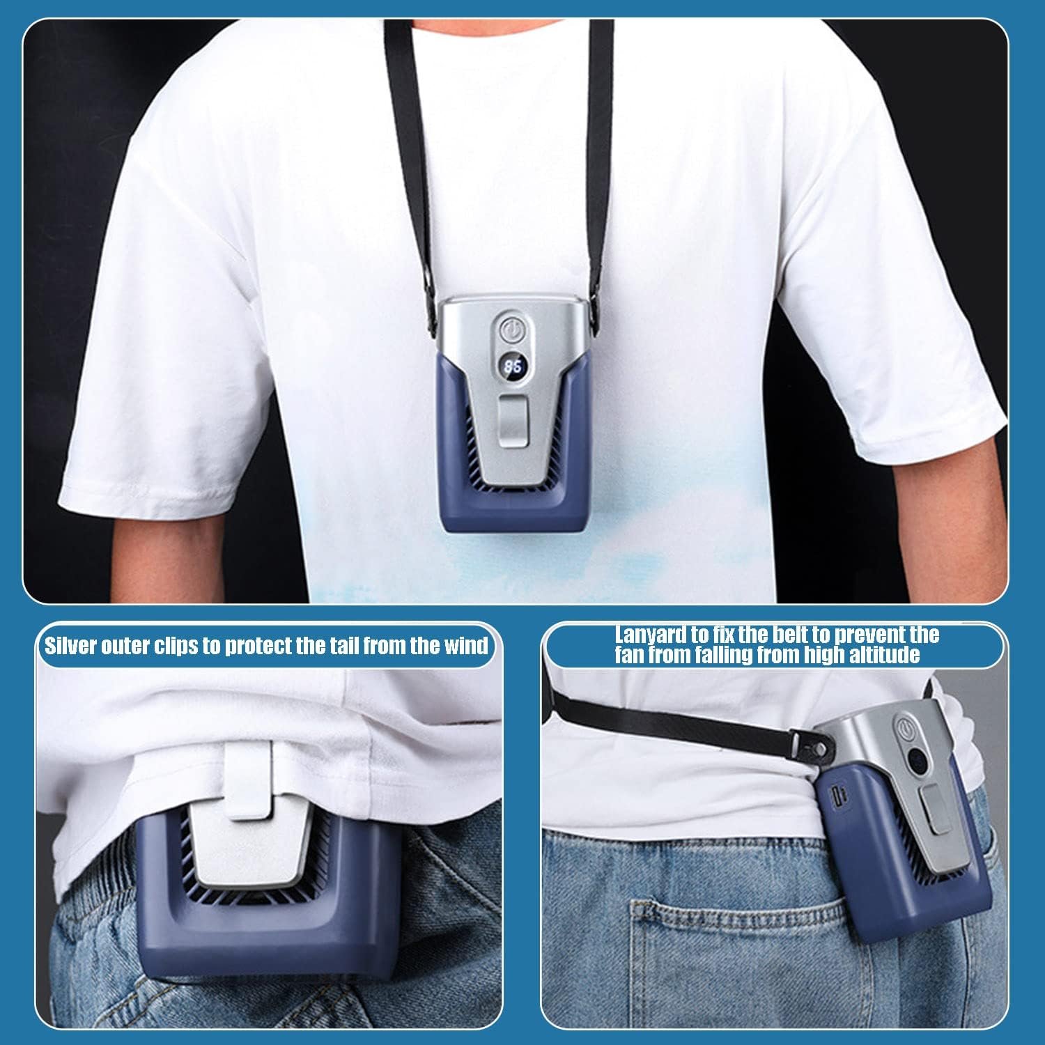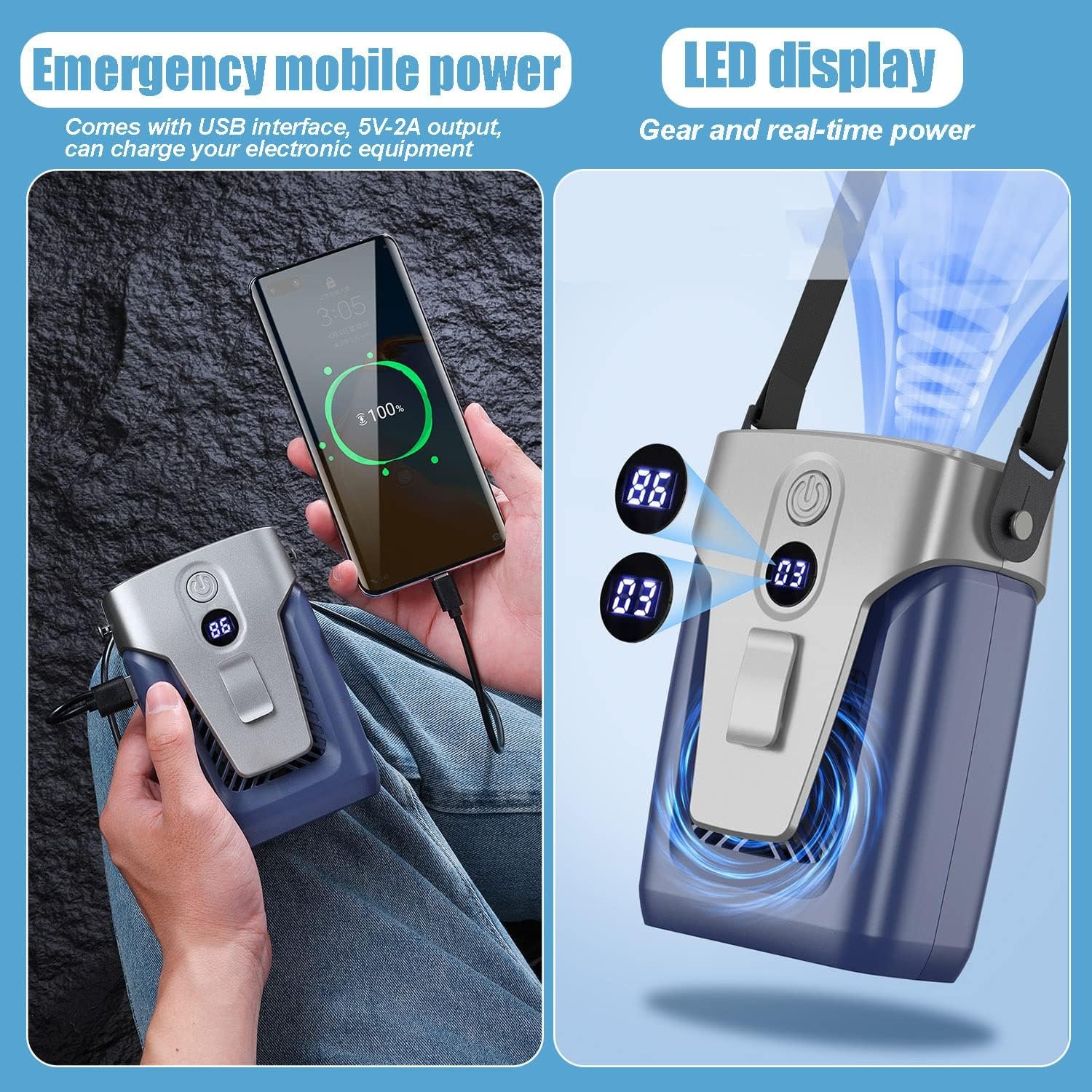 [Neck fan/waist fan/charging bank 3-in-1 design]This waist fan with compact size is specially designed with dual clips. The bigger one on the back for the belt and pants, while the smaller ones in front for fixing clothes corner. Plus, a necklace strap is included. You can clip the fan to waist, hang it around neck, or just hold it by hand to bring cool breeze everywhere. This is not only a cooling fan, but also a charging block for your phone (USB cable provided)