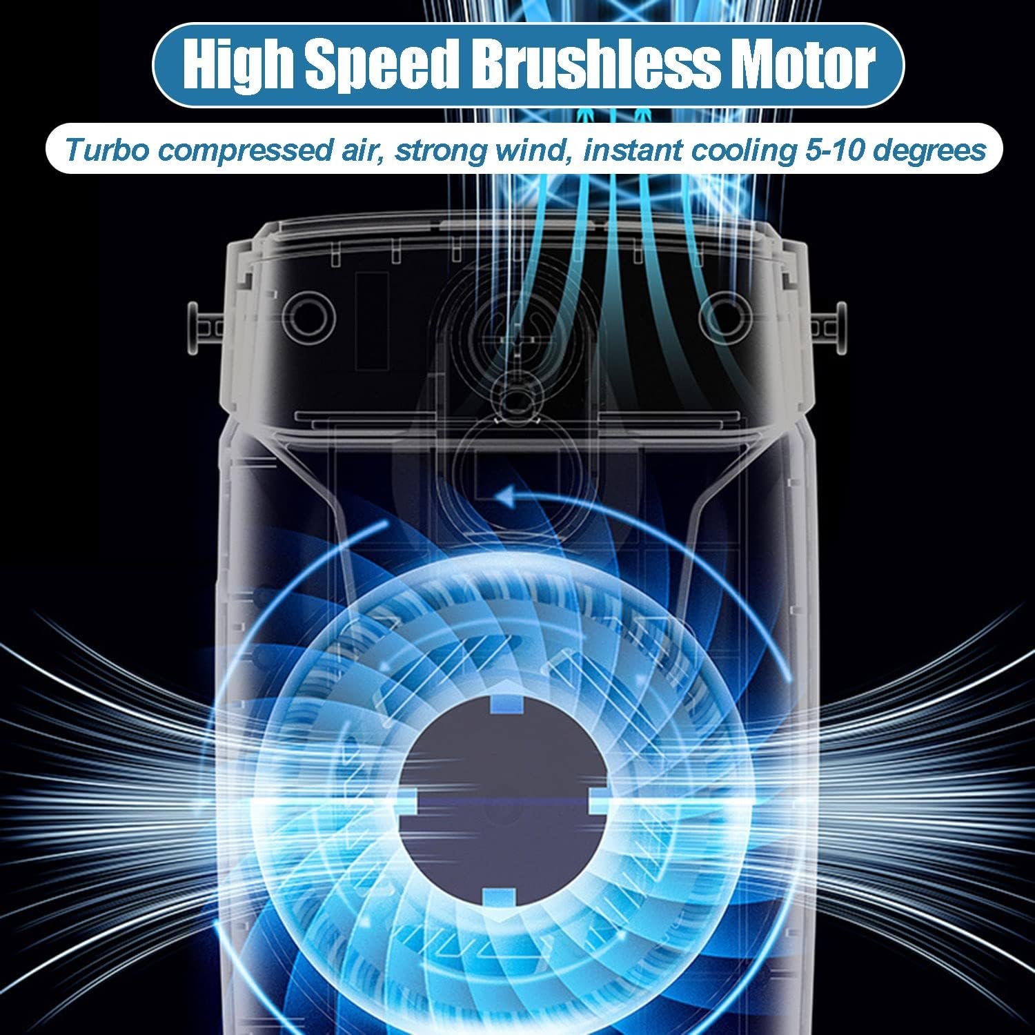 [Powerful & Quiet]Low/Medium/High 3 speeds optional, the high-performance motor generates ultra strong wind at a maximum speed of 5100 RPM, while maintaining at a fairly low noise level (less than 56dB). Embedded much safer bladeless turbo instead of visible fan blade, whereas the spacious air outlet provides far better efficient cooling effect