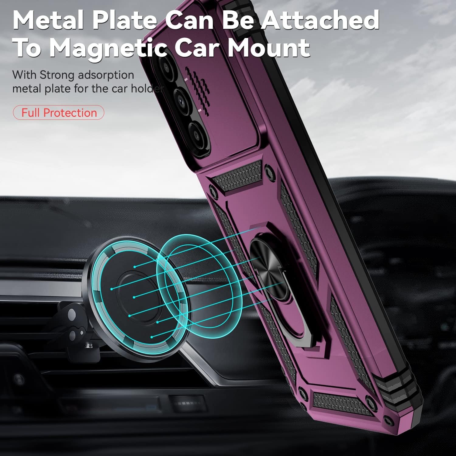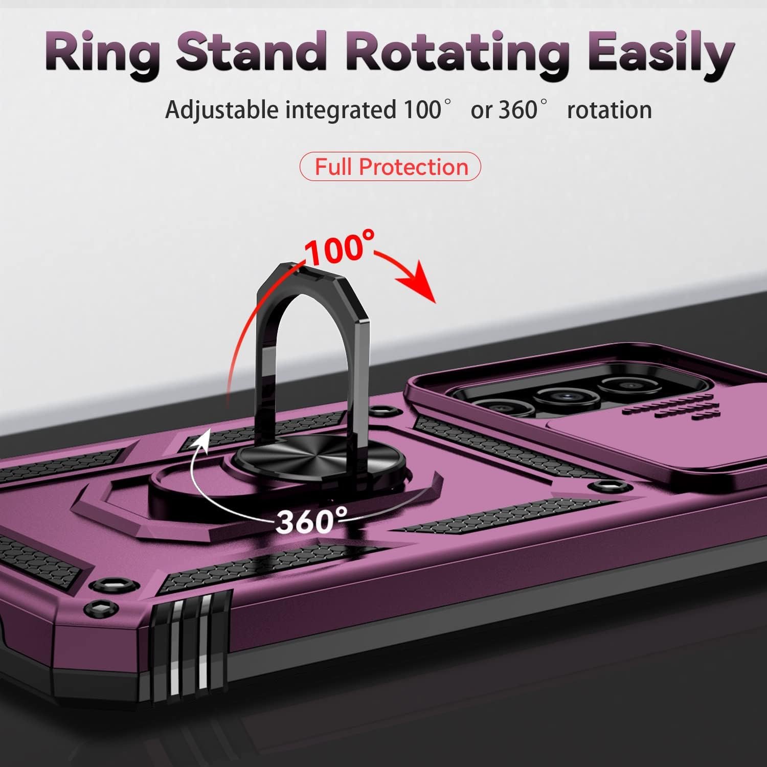360° rotatable kickstand design 360° rotatable stand design, easy to watch videos;allows you to easily carry it during work, travel or entertainment.built-in metal patch can easy to directly adsorbed you phone on the magnetic car holder (magnetic car mount is not included in the package).