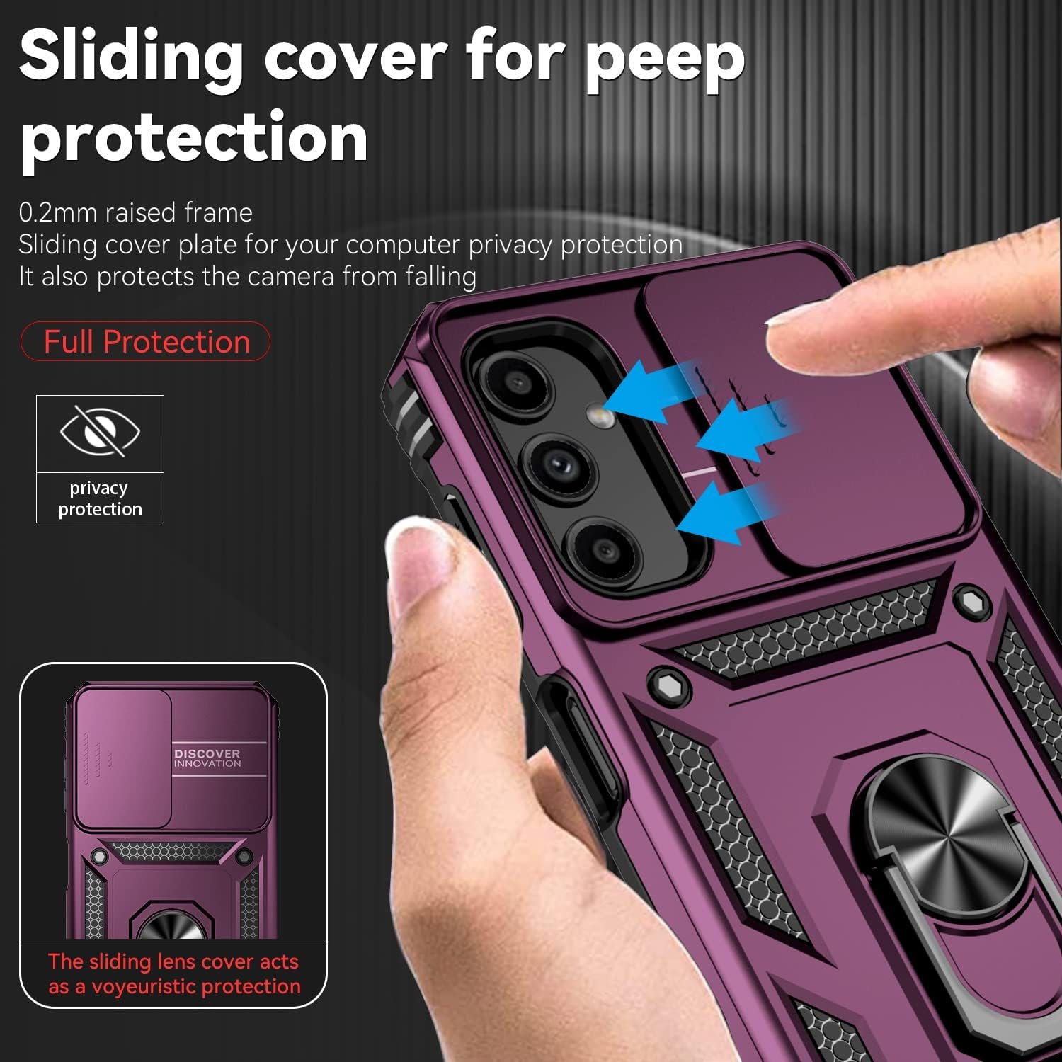 1.The mobile phone case with the camera slide cover adopts a unique lens slide cover design. The lens slide cover can slide left and right, and the sliding cover is smooth and does not get stuck. Protect your phone’s lens from damage while maintaining privacy.
