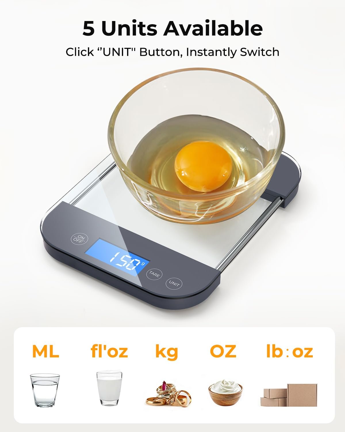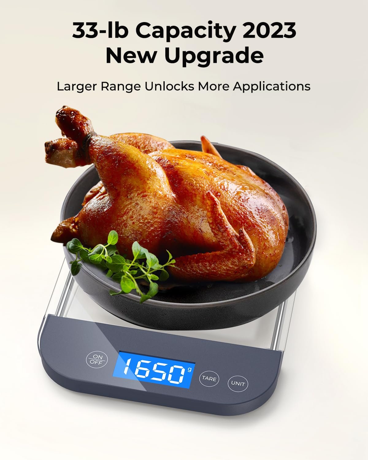 Expanded Measurement Range with Ultimate Precision: With a maximum capacity of 33lb (15kg), this food scale allows you to weigh both small and large quantities of ingredients with exceptional accuracy. Achieve precise measurements to the exact 1g, providing you with reliable results for all your culinary creations.
