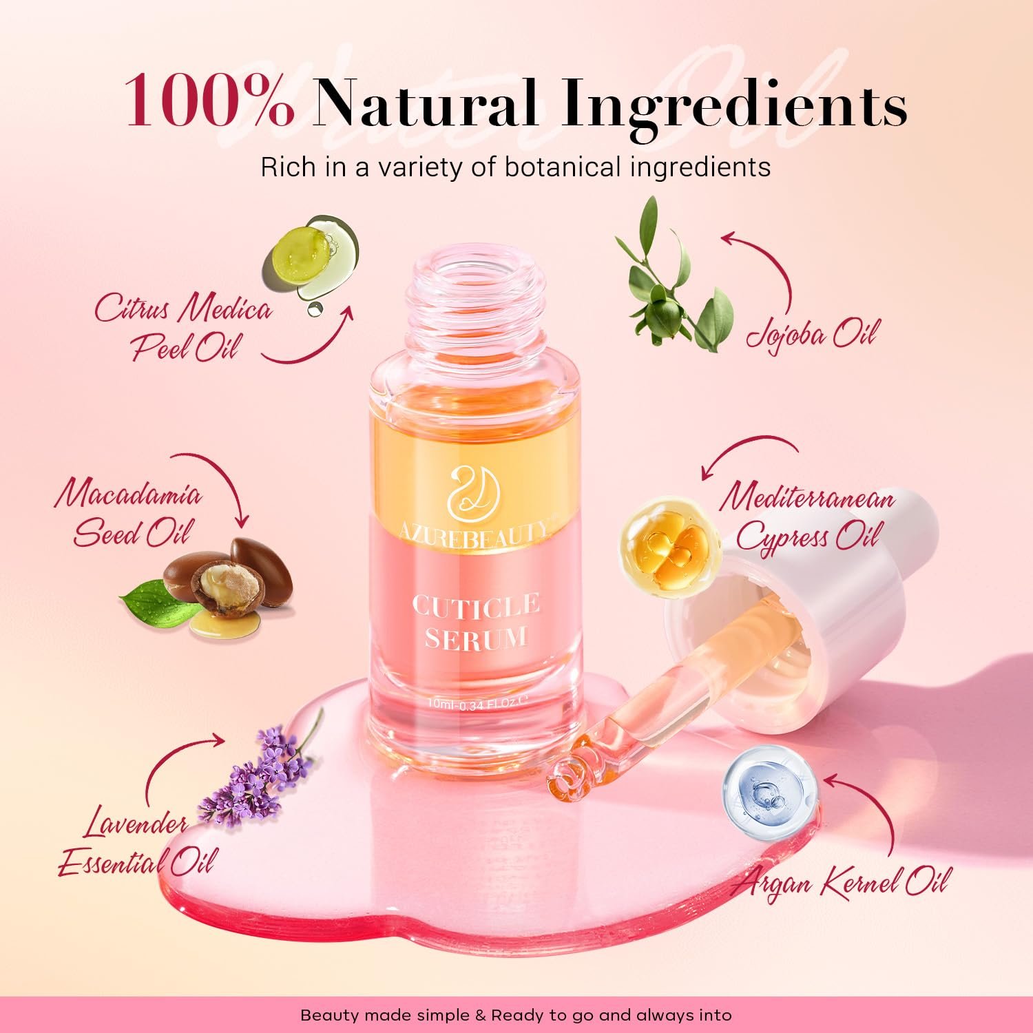 Moisturizing and Nourishing: AZUREBEUTY nail oil adds a variety of natural oils, it is refreshing and non-greasy, it keeps the skin fully moisturized while effectively locking in moisture, making the skin look healthy and radiant, and is very suitable for daily use
